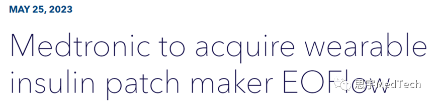 今年5月,美敦力宣布将以7.38亿美元(约52亿人民币)的价格收购EOFlow,当时还签署了一系列的协议,拟收购后者的全部股份,收购预计在2023年下半年完成,条件是满足最低投标条件和某些常规成交条件,以及获得监管的许可。