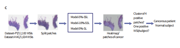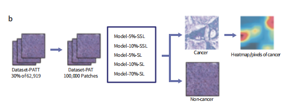 文章内容整理自中南大学生物医学工程系 喻罡 教授的专题讲座 病理诊断指通过手术切除、内镜活检、细针穿刺等方式获取人体组织或细胞,借助显微镜等工具对样本进行一系列处理和观察,研究疾病病因、发病机制、形态结构、功能和代谢等方面的改变,揭示疾病的发生发展规律,从而阐明疾病本质的医学科学,病理诊断是绝大部分疾病,尤其是肿瘤疾病的诊断“金标准”,因此病理诊断水平很大程度上决定了一个医疗机构的医疗质量水平。 近年来,随着人工智能的高速发展,其在病理诊断上的研发和应用日益广泛。但时至今日人工智能在诊断病理学上的应用尚属研发的早期和探索阶段,目前已有一些科研成果,但是多数没有得到大面积推广和利用,缺乏在应用中不断优化和完善的良性循环。 病理人工智能的主要研究进展 当前的病理人工智能主要基于有监督学习,然而有监督学习依赖于海量的标注数据,这严重制约了人工智能系统的开发和落地。针对当前病理人工智能遇到的瓶颈问题,中南大学基础医学院和湘雅医院合作的科研团队首次应用半监督学习方法建立了专家级的肠癌识别模型,对来自13个独立医学中心的8803个病人的13111张肠道组织样本的病理全片图像,进行了广泛的评估和测试。 技术路线图 实验证明,当少量标注图像时,半监督学习的肠癌模型明显优于相同标注数量的有监督学习模型。采用10%标注数据训练的半监督模型,与海量数据训练的有监督模型无显著性差异。在15,000肺癌和294,912淋巴瘤的扩展实验中,进一步证实半监督模型能够取得和海量标注数据训练的有监督模型的相似性能。通过多中心研究,证实半监督学习可以实现专家级的病理人工智能系统。由于半监督学习降低了对标注数据的依赖,因此在高效构建病理人工智能系统的实践中,具有极大的潜力和应用前景。 第二个新进展是解决不明癌症原发灶的问题。来自哈佛大学的研究人员通过训练一个卷积神经网络(CNN)模型,研究者仅依靠读取患者的病理切片,便能实现对原发灶不明癌症的溯源。 通过学习大量患者的苏木精伊红染色(H&E)病理切片,以弱监督的方式训练出一个CNN模型(命名为TOAD)。在读取一张病理切片后,TOAD能够对人体的18种组织进行预测打分,通过对预测分数进行排序,以找到癌症最可能的组织来源。 病理切片及CNN网络模型示意图 从公共数据库和百翰妇女医院中收集了来自29107名患者的32537张H&E染色切片,分别标记为18种原发癌源。按照70%,10%,20%的比例划分为训练,验证和测试数据。 通过反复的训练和优化模型,TOAD在测试数据中的Top-1准确率为83.4%,Top-3准确率为95.5%,而Top-5准确率已经能够达到98.1%。 此外,英国利兹大学圣詹姆斯医学研究所、德国国家肿瘤疾病中心的住院医师团队发表在Nature Medicine的研究成果表明,使用群体学习(SL)训练的人工智能(AI)模型可以直接从结直肠癌H&E染色的病理切片上预测BRAF突变状态和微卫星不稳定性。 深度学习和SL工作流程示意图 研究者开发了一种具有SL能力的AI pipeline,用于基于组织病理学图像对实体瘤进行分子分类。研究人员收集了三个用于训练的大型数据集:Epi700(661名来自北爱尔兰的患者)、DACHS(2448名来自德国西南部的患者)和TCGA(632名患者)。每个数据集都存储在物理上独立的计算服务器中。然后,分析流程直接从CRC组织病理学整张幻灯片图像(WSI)上预测遗传改变,在外部数据中测试所有模型。 该方法可以应用于计算病理学中的其他图像分类任务。SL使研究人员能够使用小型数据集来训练AI模型;在许多小数据集上共同训练模型相当于在单个大数据集上训练模型。这也降低了硬件要求,有可能使SL成为低收入和中等收入国家研究人员的选择。 病理人工智能的发展瓶颈 尽管人工智能在病理学中取得优异成果,但在深度机器学习临床运用之前,以下问题仍需解决。 标准化和规范化 数字病理中全片图像的成功适配,很大程度上取决于准备高质量病理切片的每一步,包括包埋、切割、染色、扫描。切割时组织切片的折叠,覆盖切片时染色变化和气泡的存在,扫描时亮度、强度的差异,平均颜色和边界强度的不同设置都可能导至原始数据不可靠,而产生不准确的结果。 在计算病理学中的作用 计算病理学不仅在医学研究中很重要,而且在临床实践中也不可或缺。为了实现这一目标,需要不同领域的专家参与到计算病理项目中去,包括数据科学家,如用于算法设计和架构的统计学家和生物信息学家,物理环境建设和硬件维护的工程师。其中,病理学家在向开发团队介绍医学问题和临床应用以及在下游行业发展方面发挥着关键作用。 在计算病理学中,病理学家不仅需要扎实的临床知识和经验,还需要统计分析和数据挖掘的能力,以弥合临床医学和人工智能之间的鸿沟,以便突然发生疾病或发现新的生物标志物时,病理学家可以快速反应,亦或是创建一个新的算法或优化现有的算法,以协助临床医生。此外,有着计算思维的病理学家能够了解数据分析过程中的潜在问题,因而可以清楚地解决临床问题。 硬件局限 计算病理学应用的准确性在很大程度上依赖于大量的数据、可靠的硬件软件以及网络环境的支持。大的图像文件(每次扫描大约3 GB)需要大量的存储空间,并具备本地和云备份能力。此外,机器深度学习解决方案,特别是应用于病理图像分析时,严