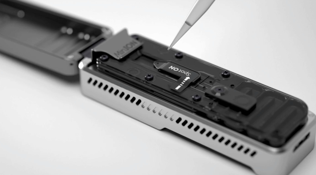 长读长、无需扩增、单分子实时测序,是SMRT测序和纳米孔测序共有的特征。但后者似乎更新潮,也更符合人们对未来测序技术的想象。 不同于SMRT技术,其只是跳出了链末端终止法的框架,纳米孔测序几乎完全摒弃了旧的“话语体系”——它从光的语言(荧光检测),转变成了电的语言(电信号检测)。我在前一篇文章里提到,可以想象测序仪中存在一双眼睛,由它来阅读由A、T、C、G四个字符写成的基因组之书。在纳米孔测序仪中,纳米孔就像是那样的一双眼睛。所谓的纳米孔,指的是纳米尺寸的孔状结构。和零模波导孔ZMW不同,它是两端贯通的孔洞。可以是生物纳米孔,也可以是固态纳米孔,或者是将蛋白质孔集成到固态膜上的混合纳米孔。纳米孔测序的头号公司Oxford Nanopore Technologies(以下简称ONT)的第一代技术采用的是α-溶血素一类的蛋白质纳米孔,内径为1 nm,与单个DNA分子的尺寸相当。此类纳米孔在细胞膜上天然地存在,作为离子或分子进出细胞的通道。未来则可能使用氮化硅、石墨烯等材料的固态纳米孔。  这些纳米孔分布在一层高电阻率的聚合物膜上。膜的两侧是两个充满电解液的腔室。由于核苷酸分子本身带有负电荷,它们会从阴极一侧,流向阳极一侧,从而穿过纳米孔。当DNA/RNA链从纳米孔中穿过时,纳米孔也在“阅读”这条链。链上的每个核苷酸在占据纳米孔的那一刻,对离子电流产生阻断效应。而由于不同的核苷酸在尺寸、空间结构上存在差异,相应地,在通过纳米孔时产生的离子电流的变化是不一样的。也就是说,每种核苷酸都有其特征性的电流变化,如同独一无二的指纹。因此,实时监测并记录某条DNA/RNA链通过纳米孔的电流变化图谱,可以回溯、推断出核苷酸顺序,从而实现单分子测序。如上图所示,纳米孔测序过程犹如穿针引线。就像线离不开针的固定和导引,核苷酸链从纳米孔中step-wise地、逐步地穿过时,离不开相关蛋白质和酶的辅助和控制。其中最关键的可能是分子马达(Molecular Motor),或称马达蛋白(Motor Protein)(图中的黄色斑点)。它具有解旋酶活性,使DNA双链或DNA-RNA杂交链解离为单链,牵引单链穿过纳米孔,还能调控穿过时的速度。核苷酸链在纳米孔中逐个穿过的过程被称作易位(Translocation),步骤很简单:先导接头、模板链、发夹接头、互补链、尾部接头依序通过。其中发夹接头把两条链接续起来,允许模板链和互补链的连续测序,相当于把一条序列测了两遍,是纳米孔测序中的2D读取模式。1D模式下则采用普通的接头(为了提高通量而牺牲一部分准确率)。也许就是因为采取了电信号检测而不是荧光检测方式,纳米孔测序仪可以做得比常规测序仪更小巧、便捷。2014年4月,ONT公司向一部分抢先体验的用户推出了世界上首款纳米孔测序仪,MinION,并在2015年将其商业化。这台测序仪就如同它的名字一样迷你,仅手掌大小,重量在90 g左右。用于信号检测的膜片钳放大器被压缩、集成到了专用集成电路(Application-Specific Integrated Circuit, ASIC)上。所以它比一部手机大不了多少。这也让纳米孔测序仪更具有未来感。试想一下,当测序仪变得像耳温枪、血糖仪一样小巧、便宜,家家户户都可以备一台,那岂不是很方便?孕妇不必去医院做无创产前检测(检测胎儿是否患有染色体非整倍性检测,如21-三体综合征),自己扎一针,用测序仪对含有胎儿游离DNA(cffDNA)的血液测个序就行了。癌症则可以对血液中的循环肿瘤DNA(ctDNA)测序。尽管现在听起来有点天方夜谭,但我们不应缺乏想象。当世界上首台计算机问世时,那个30吨的大家伙对于普通人来说遥不可及。而现在遍地是电脑,人人手持一部手机。突出的便携性,以及即时性(测序速度很快),使之与POCT(Point-of-Care Testing)的调性很搭。它非常适用于一些需要现场即时分析的场合。例如,MinION测序仪曾被带去非洲西部,对埃博拉病毒患者进行测序。埃博拉病毒的确认仅需15分钟的仪器运行时间。NASA曾在微重力条件下对MinION进行试验,并将其带去国际空间站。因为MinION足够地小,在失重条件下也容易控制。小型化是测序仪发展的必然趋势,但前提是无损于测序性能。独特的基于电信号检测的测序方式和异于普通测序仪的便捷性,使纳米孔测序技术被寄予厚望。这种“厚望”可能还比人们对SMRT技术的期望更“厚”一些。甚至还出现了一个说法,将纳米孔测序与SMRT测序区分开来,单独归在“第四代测序技术”一类。纳米孔测序的长读长优势更显著,在长读长模式下为10-100 kb,超长读长测序模式下则达到100-300 kb,最高记录为2.3 Mb。但它的测序准确率一般低于SMRT测序。稍微想想,就能知道高准确率的纳米孔测序实现起来有多么困难。核苷酸链在纳米孔中的易位速度极快,电流变化极难捕捉,必须千万次地优化纳米孔的设计与修饰以及马达蛋白,减缓易位速度,才能得到可辨认的电信号谱图。而不同核苷酸产生的离子电流变化又是极其微小,如何根据这种微小的变化将它们区分开来,也是一大难题。可以说,纳米孔测序更特别,与NGS的距离更远。研究人员们通常将其与NGS结合使用,利用其在长读长上的优势,拓宽基因分析与生物学研究的边界。目前,对于不同的测序技术,一个普遍的共识是:没有最好的测序技术,只有最适合的技术。对于纳米孔测序,想象中的美好未来还没有来,但值得期待。[1]https://nanoporetech.com/platform/technology[2]Jain, M., Olsen, H.E., 