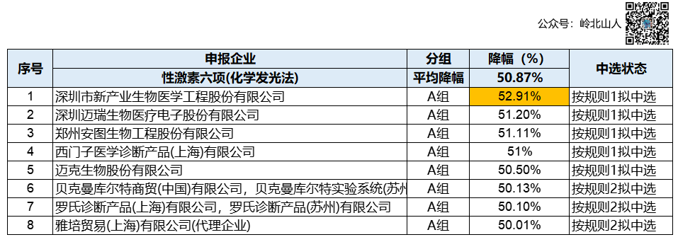 为了降低临床检验试剂虚高的价格,根据国家医保局2023年部署,安徽省医保局于近日牵头开展了二十五省(区、兵团)体外诊断试剂省际联盟集中带量采购。12月29日,大皖新闻记者从安徽省医保局了解到,本次集中带量采购拟中选结果已经公布,拟中选的体外诊断试剂产品平均降幅为53.9%,最高降幅达73%。数据统计,约10600家医疗机构参与采购量申报,采购总需求量为7.1亿人份/年,市场采购金额约110亿元。本次省际联盟集采在最高有效申报价基础上实行组套降幅和单品竞价相结合的方法。企业将申报降幅和价格密封至现场后,在所有参与方以及公证处共同监督下由第三方解封,公开宣读,降幅大或报价低的产品中选,现场直接宣布拟中选结果,整个过程公开、透明,保证了公平竞争。本次集采,安徽省医保局在结合临床实际、调研走访、专家论证、征求意见和大数据分析的基础上,聚焦临床检验市场发展迅猛的分子诊断和免疫诊断领域,科学遴选五大类产品,即人乳头瘤核酸病毒、人绒毛膜促性腺激素、性激素六项、传染病八项、糖代谢两项检测。B组的中选价格参考A组的平均价格或最高降幅,以及A组的平均价格和最低价格,各组A组的中选信息汇总如下。