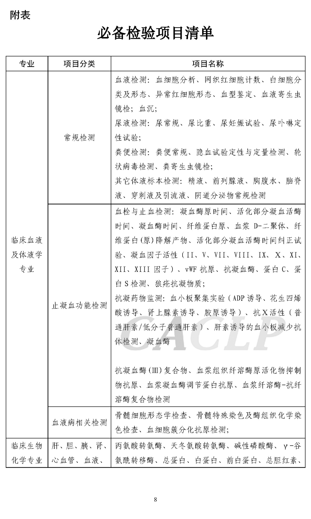 必备检验项目清单共设置了5个专业(临床血液及体液学专业、临床生物化学专业、临床免疫学专业、临床微生物学专业、临床细胞分子遗传学检验)和26个分类。