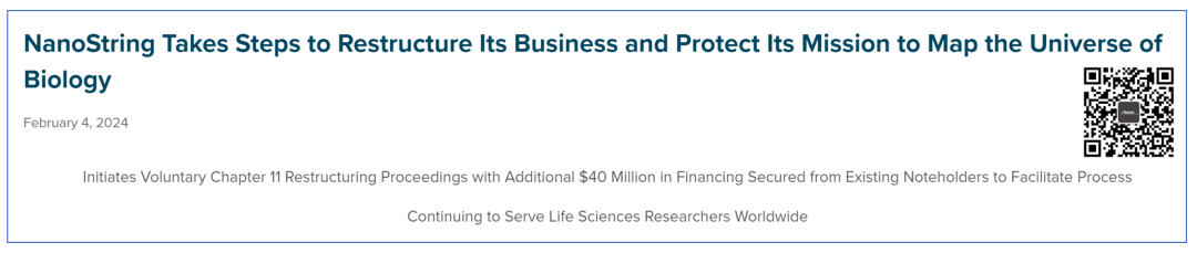 那个时候,我们见证了历史; 今天我们再次见证历史! 对历史沿革不太了解的,欢迎点击下面的链接了解下。 点击了解这段历史 可能走向 我们知道,在2024年2月4日,NanoString向法院提出了破产重组。 当时提到,这并不是个坏事,希望还是有的。 毕竟4100万美元的注资是真金白银,谁也不愿意看着他打水漂对吧? 那么,赢下UPC的官司对NanoString来说危机解除了么? 并不能这么说。 在美国,10x Genomics还有针对NanoString的诉讼进行中,因此,为了避免这种干扰,NanoString的破产重组还得继续。 这是第一个基本可以确定的走向。 NanoString CEO Brad Gary 在公告中表示:“我们相信,随着今天的裁决,局势正转向NanoString和科学自由的一方。通过寻求执行无效和非法获得的专利,10x对科学进展造成了不计其数的干扰,并给NanoString的客户、员工和投资者带来了巨大伤害。NanoString致力于继续为选择而战,并打算寻求赔偿损害,以弥补原告不合理的临时禁令造成的困难。在这个过程中,我们将坚定不移地致力于将资源投入创新,而非诉讼。” 注意,这里的重点是:“NanoString致力于继续为选择而战,并打算寻求赔偿损害” 这就是第二个可能的走向,NanoString可能反诉10x Genomics寻求赔偿。 最后 我们依然保留之前的观点: 最后,我们还是要强调一下,商场如战场。 既然是战场,一切符合规则的战术、资源都可以使用。 10x Genomics通过专利铁拳获取商业利益无可指摘,NanoString通过破产重组程序暂时避过专利诉讼更是合理合法。 接下来,需要关注的是10x Genomics,Vizgen接下来的动向。 如果能够在美国市场再次复制欧洲的成功,那么,NanoString的危机几乎可以说是解除了。 END