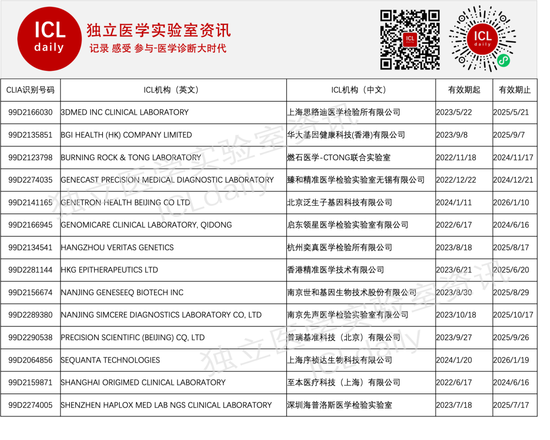 CLIA 认证,由美国临床实验室委员会颁发实验室资质证书,表明该实验室符合美国联邦政府实验室修正案的相关规定,达到优质实验室标准。 CLIA认证也代表了目前国际最高水平的认证标准。 CLIA是 Clinical Laboratory Improvement Amendments的缩写,即临床检验改进修正计划,依据美国联邦法规(U.S. Code of Federal Regulations)。 CLIA 实验室主要有三个机构监管,分别是医疗保险和医疗补助服务中心(CMS)、疾病控制和预防中心(CDC)、美国食品和药物管理局(FDA) A:CMS负责所有财务管理和计划的行政管理,包括认证和收费、检查、执法、评审和国家豁免的批准、PT计划的批准,并制定规则。 B:CDC负责指导CLIA 相关研究,并为CMS提供科学及技术支持和咨询服务 C:FDA负责对临床实验室检测项目进行分类;管理某些诊断试剂/材料、实验室信息系统使用的某些软件;并监管体外诊断试剂盒上市。 CLIA的证书分为三种(COC、COA、COR证书),均为2年效期。 a、COC:certificate of compliance b、COA:certificate of accreditation c、COR:certificate of register CLIA与CAP在国内的区别及侧重点: 1、背景: 随着NGS及LDT的兴起与普及,基因检测及其相关行业蓬勃发展。 国内医学实验室相关法规标准依据ISO15189实施管理,但LDT模式CNAS目前暂不受理。 随着市场及业务规模的开展,企业招投标、入院、共建、内部规范等等方面已迫使企业不得不寻求医学相关权威认证。 CAP和CLIA是基于美国法律法规的基础上,故LDT模式也同步认可。这就给国内市场打开了另外一条认证出路。 起初只是个别有海外业务的企业实施,方便国际交流。但随着规模与市场的逐步扩大,市场也在不断被教育,越来越多的实验室也接受和认可CAP、CLIA认证。 2、CAP及CLIA的区别、侧重点: CAP是公正的第三方机构,CLIA多少带一些“政府色彩”,但从初心上来看都是为了保证医学实验室的持续改进与提高。 国内基因检测或相关行业从市场角度,首先拿到CAP证书足以开展相关竞争工作。 有些企业有海外业务或者与国际知名药企合作,对方对于合作有企业内部要求的,一般会要求再提供CLIA证书。 CAP与CLIA对比国内来看,CLIA相当于基础的“医疗执业机构许可”的申请,CAP是相当于ISO15189认可。 前者偏政府行为,后者为公正的三方行为。 3、通过顺序及好处: 因两者为不同审核机构,双向申请(双C认证)则需走两条路,CAP与CLIA同步,但花费较大。 CAP为CMS认可的公正性机构之一,也可代替CMS对企业进行CLIA认证。 鉴于以上这种情形,大多企业优先布局CAP认证,待通过后再申请CLIA认证。 好处有两点:1、速度快;2、花费少; 综上,目前国内CAP是大家优先考虑的内容,CLIA根据企业海外业务或合作海外企业有要求CLIA的,则需增加CLIA认证。 在CAP满足的基础上,CLIA可谓是锦上添花的工作。 以下是最新全国独立医学实验室CLIA全名录: 本次统计时间:2024年2月26日 信息来源:CMS官网 同时,除了华大基因健康科技(香港)有限公司(CAP暂未查到),以上13家均为双C认证,CAP、及CLIA均通过。全名录合集: 2024 最新 | ICL ISO15189全名录,4年增长近100家 编辑 | ICL资讯 独立医学实验室资讯出品 |