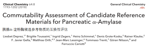 欧盟联合参考局对胰腺淀粉酶候选参考物质互换性评估 比利时赫尔的欧盟联合研究中心(JRC)于2018年在美国临床化学杂志上发表了一篇文章:胰淀粉酶候选参考物质的互换性评估。这篇文章离开IFCC互换性工作组发布的参考物质互换性评估系列文章仅几个月的时间。说明,该中心对刚刚研究的胰淀粉酶参考物质,进行了互换性的评估。这是至今唯一报告对候选参考物质实施互换性评估的内容。所以,我认真阅读。现将我学习体会形成微信介绍给大家。供参考。