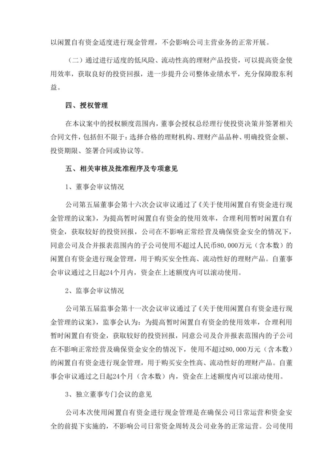 3月21日,广东凯普生物科技股份有限公司发布公告,为提高暂时闲置自有资金的使用效率,合理利用暂时闲置自有资金,获取较好的投资回报,广东凯普生物科技股份有限公司(以下简称“公司”或“本公司”)于2024年3月20日召开第五届董事会第十六次会议、第五届监事会第十一次会议,审议通过了《关于使用闲置自有资金进行现金管理的议案》,同意公司及合并报表范围内的子公司在不影响正常经营及确保资金安全的情况下,使用不超过80,000万元(含本数)的闲置自有资金进行现金管理,用于购买安全性高、流动性好的理财产品。在授权的期限及额度范围内,资金可以滚动使用。本议案无需提交公司股东大会审议。 在保证正常经营的前提下,提高公司闲置自有资金使用效率,增加公司收益,公司及合并报表范围内的子公司拟使用不超过人民币80,000万元(含本数)的闲置自有资金进行现金管理。 拟投资的产品须符合以下条件:期限不超过24个月(含本数)的银行、证券公司的安全性高、流动性好的低风险投资产品。不用于其他证券投资,不购买以股票及其衍生品、无担保债券为投资标的的理财产品。 自公司董事会审议通过之日起24个月(含本数)内有效;在本决议有效期内,上述额度可滚动使用。 具体公告内容如下: |