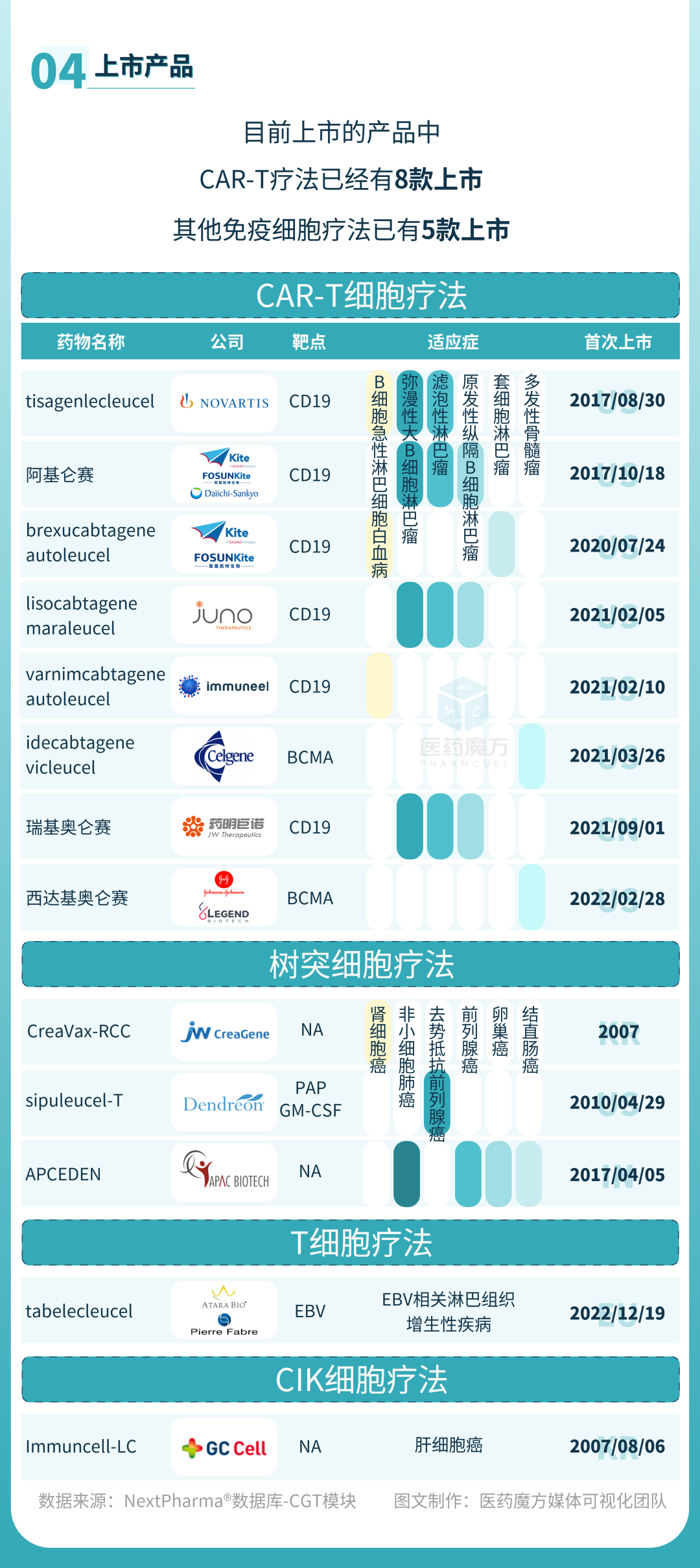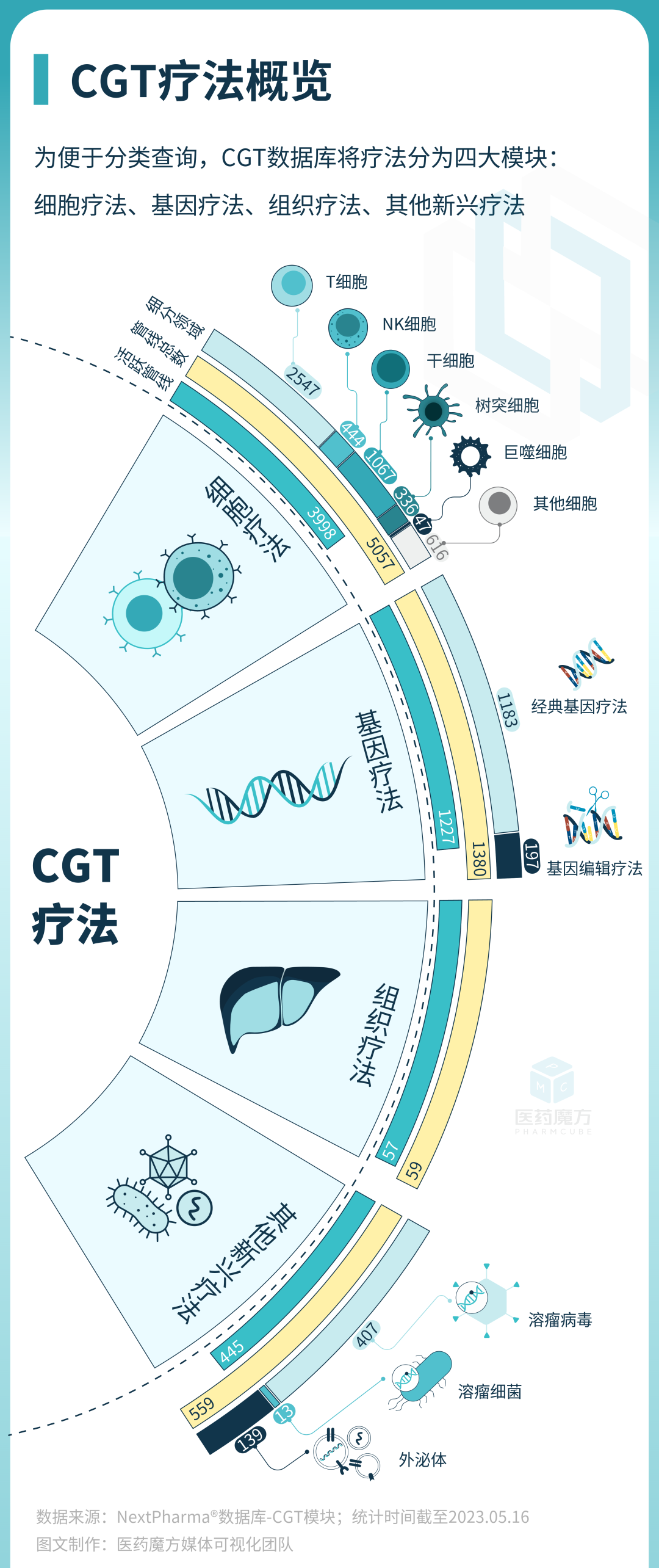 后疫情时代,生物医药板块的投资浪潮逐渐减弱,尤其是化药和疫苗板块资金流出痕迹明显,细胞基因疗法(CGT)板块的发展也面临了一定的冲击,但是作为难治性慢性疾病和肿瘤防治领域内公认的最有希望的方向之一,还是有许多投资大咖依然在持续投资和坚守。在小编看来,医药魔方节前推出的CGT板块梳理汇总图,非常不错。尤其是对于其中的免疫治疗领域(免疫细胞和溶瘤病毒等)的管线整理相对齐全,因此,再次转载分享给大家!