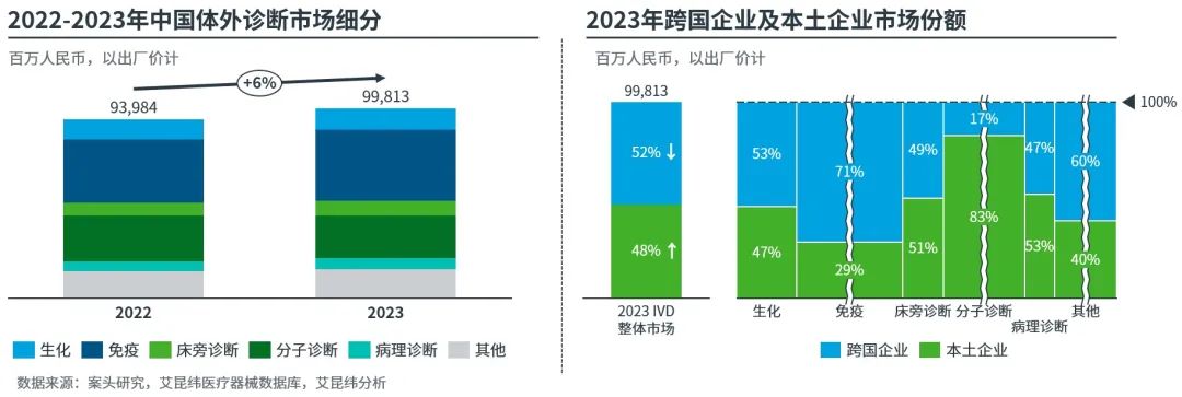 2022-2023年体外诊断市场增幅达6%;本土企业市场份额较2022年增长1%,国产替代进程较疫情期间有所放缓