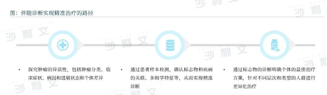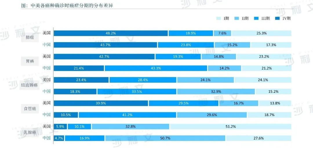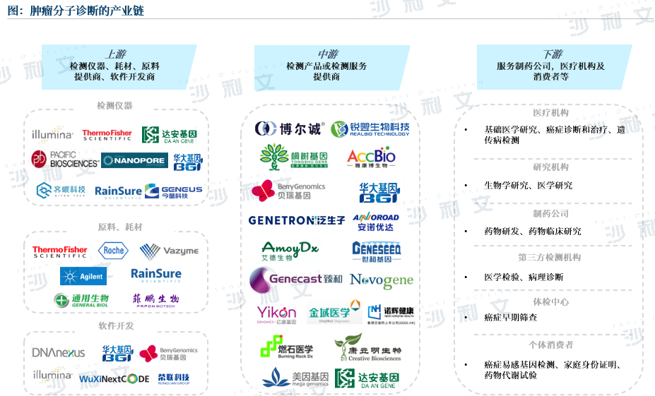 分子诊断已经成为肿瘤诊疗环节中重要的解决方案之一,从肿瘤高风险人群和健康人群的早筛早诊工具,到肿瘤分子分型、晚期肿瘤患者的精准用药指导,再到检测肿瘤患者微小残留病灶以评估复发风险,分子诊断的临床应用价值正逐渐渗透至肿瘤全生命周期的干预与管理。 近年来,肿瘤分子诊断行业在技术发展、政策支持、市场需求和产业合作等方面呈现出良好的发展态势。分子诊断企业将研发成果落到诊疗实际应用,在技术研发、产品质量、服务水平等方面不断蓄力,持续推动更为优质、更能满足临床精准需求的肿瘤分子诊断产品面世并惠及大众。 弗若斯特沙利文(Frost & Sullivan,以下简称“沙利文”)撰写《肿瘤分子诊断产业发展蓝皮书》(以下简称《蓝皮书》),旨在剖析肿瘤分子诊断行业现状,追踪行业和技术发展脉络,挖掘行业发展巨大潜力,分析市场发展背后的驱动因素,以期为肿瘤分子诊断赛道参与者和关注者提供参考。 3月26日,沙利文举办《肿瘤分子诊断产业发展蓝皮书》线上发布会,对《蓝皮书》进行解读和分享,并邀请肿瘤分子诊断行业企业代表围绕肿瘤分子诊断研发挑战、技术创新等热门话题进行探讨。 扫码立即获取报告 扫码观看发布会回放 一、肿瘤分子诊断行业总览 0 1 肿瘤分子诊断的介绍 0 2 肿瘤分子诊断的发展历程及技术组成 0 3 肿瘤分子诊断相关的政策及监管背景 0 4 肿瘤分子诊断产业链现状分析 注:仅例举行业内部分公司 来源:沙利文分析 二、分子诊断市场规模分析 2022年中国医疗器械市场中,IVD行业的市场规模占据最大的份额,约为17.2%。其中,分子诊断是IVD行业的重要分支。与其它主要的体外诊断方法相比,分子诊断一方面可以从基因层面进行检测,因此在检测灵敏度和准确性上优势明显;另一方面,分子诊断在传染性疾病检测、肿瘤个体化诊疗等领域应用上具有独特的应用优势,可以实现生化检测和免疫诊断难以实现的检测能力,例如在感染初期识别病毒,或提早确认基因缺陷。其临床及科研应用市场巨大,因而在近年来获得迅速发展。2022年,从中国IVD市场规模按细分领域拆分的情况来看,分子诊断位于免疫诊断之后的第二大IVD细分赛道,占比超过五分之一。 来源:沙利文分析 《蓝皮书》梳理了全球及中国分子诊断市场规模情况;并对中国肿瘤分子诊断及检测行业进行了市场规模分析,在反映肿瘤分子诊断及检测市场发展现状的同时,对未来市场的成长空间进行前景预测,更多详细内容可参见完整版报告。 三、肿瘤分子诊断的应用层面分析 肿瘤早筛早诊 ▸中美癌症发病率、死亡率以及总体癌症五年生存率对比 将中美癌症流行情况进行对比可发现,美国的癌症发病率远高于中国,2022年美国每百万人的癌症发病率达到了5,755,而中国为3,407。从死亡率来看,2022年美国每百万人的癌症死亡率达到了1,828,中国在这一数字上反超美国,达到2,039每百万人。 据国家癌症中心统计分析的中国癌症生存率研究,中国所有确诊癌症的总体五年生存率从2003-2005年的30.9%增长至2012-2015年的40.5%。尽管我国医疗质量和诊疗能力不断提升,但这一数据与发达国家相比仍有提升空间。2011-2017年,美国癌症患者5年生存率达到67.7%。从各癌种的五年生存率数据来看,无论是预后相对较好的癌种如甲状腺癌和乳腺癌,抑或难治疗、恶性程度极高的胰腺癌、肝癌,美国均高于中国。 病因预防、早诊早治及临床治疗构成了癌症防控的三级体系。中美在死亡率、总体癌症五年生存率上的差距主要是由于两者在癌症诊治体系上的差距。美国投入更高的医疗支出,推动肿瘤精准医疗,对患者进行更科学的全生命周期管理,患者广泛使用以靶向治疗和免疫治疗药物为代表的先进疗法。 ▸中美各癌种确诊时癌种分期的分布差异分析 中国国家癌症登记中心联合中国医学科学院与北京协和医学院肿瘤医院,分析了2016年1月-2017年12月中国12个省份、23个地区医院登记的癌症病人电子医疗记录以及癌症登记中心记录。研究发现我国肺癌、胃癌、食管癌、结直肠癌及女性乳腺癌中52.8%的患者在确诊时已经处于晚期阶段(III-IV期)。在中美对比研究中,I期乳腺癌确诊(美国51.2% vs.中国27.6%),I期结直肠癌确诊(美国24.1% vs.中国15.2%),I期肺癌确诊(美国25.3% vs.中国17.3%)。在食管癌领域,我国早期诊断优于美国,I期食管癌确诊(中国18.7% vs.美国13.8%)。 来源:文献检索、沙利文分析 ▸肿瘤早筛早诊的介绍以及常见癌种的传统早筛早诊方式分析 理想情况下,在肿瘤癌前病变期,采取快速、简便的方法从尚未出现症状的目标人群中筛选出肿瘤高危群体,并进行适宜的临床干预和治疗,能够将肿瘤遏制在原发灶期,从而实现从本质上降低发病风险,尤其是发病率和死亡率高、发展周期长的癌种。 肿瘤早筛早诊的主要技术路线包括放射影像学、血清蛋白学、细胞学诊断以及液体活检。在已有较为明确的推荐筛查和诊断手段的14种常见癌症中,12种癌症均需要依赖于CT、X光等影像放射检查以及内窥镜检查。但影像学检测和内镜检查需要专业的执业医师、技师以及护理人员,且内镜检查由于患者依从度的问题还需要麻醉医师做无痛处理,属于人力和资源密集型的手段。而我国影像科室、麻醉科室人员相对短缺。 ▸液体活检技术概览 而液体活检技术基于分子诊断技术,以非固态生物组织包括血液、尿液