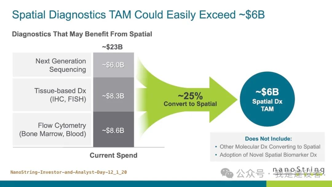 都说水大鱼大,容得下同饮一江水。为什么10x Genomics要对几家竞争者发起专利战,一副势不两立的样子。 如果一个市场足够大,应该容得下不同的玩家;似乎只有市场不太大,才会冰炭不同炉,起意敌对。 很好奇,空间生物学的市场到底有多大? 首先,什么是空间生物学? 空间生物学可以定义为在空间背景下对组织中的目标分析物进行的分析(即标记物在组织和/或其他位置的表达),并且主要由多重生物标志物的分析所驱动的生物学和病理生理学研究。当下,大多数空间分析都是蛋白质组学或转录组学或两者结合的多组学,空间基因组学(例如3D基因组)也存在,但不太常见。这些旨在原位分析多重生物标志物的技术,包括mIF、mIHC、数字空间分析、多重 FISH 和成像质量的流式细胞术等等。 再回到各家对于这一市场的预估和测算上。 10x三位一体的产品,定位在单细胞和空间组两个领域。两个领域代表了两个更深的维度,10x视传统的分子生物学、免疫荧光、细胞成像等技术工具可解决的市场均为潜在市场(TAM)。在研究和转化这个应用领域,10x认为存在160亿美元的TAM,其中转化的这个市场为70亿美元。10x称,每年大约160亿美元的机会是基于对研究人员资金和潜在制药样本可用性的估计。(这无异于在说,这个数字是夸大的带有水分的?) Nanostring则引用了LEK咨询公司2020年的一个报告(找不到具体出处),称GeoMx & CosMx所处的空间生物学研究的TAM为60亿美元(TAM约等于14,000套仪器=7000台GeoMx + 7000台CosMx),这其中包括了发现和转化。而基于空间的诊断市场可能超过60亿美元,所以整体空间生物学市场预期为120亿美元。 另一大玩家Bio-Techne的报告中简单提及空间生物学的TAM为50亿美元左右。 另一个数字则来自于Akoya,其在报告中称预期的TAM为140亿,包括了临床诊断的70亿美元市场。然后又引用DeciBio的报告(第一版,Q4 2022)称只有TAM的10%能在2027年之前实现。DeciBio的报告里写到,以每年30%的增长,到2027年空间生物学的市场为12亿美元,其中一半以上为转化及临床研究。 DeciBio将与购买用于运行检测的空间生物学平台或试剂/套件相关的仪器和试剂收入,以及与空间载片或图像分析的湿实验室处理相关的服务收入(例如,由CRO/参考实验室),及向学术界、生物技术/制药公司和 CRO 客户(包括治疗公司和诊断/分析工具公司)销售产品和服务的收入包含在了报告内,但不包括数字病理学/图像分析,与 CDx开发服务收入,及其他无需空间分析的组织学测试等项目。 DeciBio也在最近升级了这个报告的第二版,空间生物学市场预计在 2024 年将达到约 8.6 亿美元,并预计在未来 5 年内每年增长 21%,到 2029 年将达到约22.7亿美元。 从这些差异巨大的市场容量测算来看,空间生物学领域还很年轻,这些预测存在很大的不确定性,任何可能出现的关键发展都能决定该技术的未来采用及速度。 举例来看,10x称原位空间分析平台Xenium仅发布一年就累计售出250多台,实现了快速的采用和开机运行。这什么概念?作为对比,CosMx作为Xenium的对头产品,是NanoString三个平台中采用最快的,发布5个季度累计订单180台。 迄今为止,学术界一直是空间生物学分析的最大客户群体,然而,随着初步研究产生有希望的结果以及技术和分析管道变得更容易获得和验证,空间生物学在生物制药转化研究和临床试验中的使用正在增加。可扩展性、标准化和临床实用性的持续进步预计将推动研发各个阶段的增长。 过去三年,10x的空间产品(包括Visium和Xenium)实现了快速增长,截止去年底,其空间产品的仪器累计销售786台,仪器及耗材总营收约为1.35亿美元。与之相类似,NanoString的空间产品(包括GeoMx和CosMx)也保持了积极的增长,截止2023年第3季度(此后身陷禁令泥潭,至今未提交第四季度及年报),实现安装510套,在此之前的12个月实现了总营收8400万美元。从运营及财务结果来看,两者真是势均力敌。 不管是按照8.6亿美元还是各自估算的超100亿的市场规模,10x在空间生物学的市场渗透率都还远不及20%。DeciBio的报告称该市场已适度整合,包括 10x、NanoString、Akoya Biosciences 和 Bio-Techne 在内的头部供应商占据了约 60% 的市场份额。然而,其他几个中小型企业(例如Standard BioTools、徕卡显微系统公司、Ultivue 和 Vizgen等)随着市场的增长和进一步发展,已准备好抢占市场份额。 这可能部分解释了为什么10x对几个竞争对手挑起了专利纠纷。 未来的空间组学市场可能有很大,但眼前的这个市场可能真得拼命才能胜出。而专利正是一把威力无穷且精准致命的武器。 |