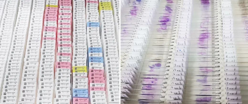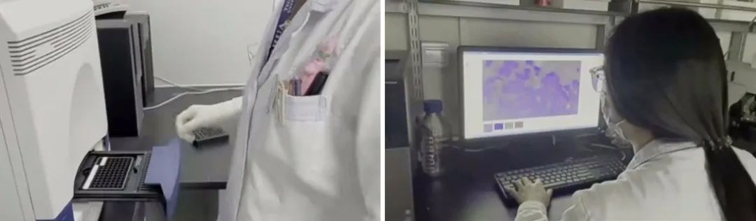 图2. 原位分子杂交 病理另一项不为大众熟悉的功能是跟踪观察疾病的发展和疗效,在大家的印象中,病理诊断周期长,不够灵活,不适合跟踪观察使用,实际上,有些疾病离不开病理诊断来“保驾护航”。比如确诊为宫颈病变的患者,就需要在治疗后定期活检来了解病情的发展;小肠移植的患者,需要定期活检来检测是否有发生术后排斥反应。病理诊断,是诊断过程中的最后一步,对临床医生诊断和治疗有巨大的指导意义,病理检验过程中,积累了大量典型病例和典型标本,也为科学研究和教学提供了大量的资料。