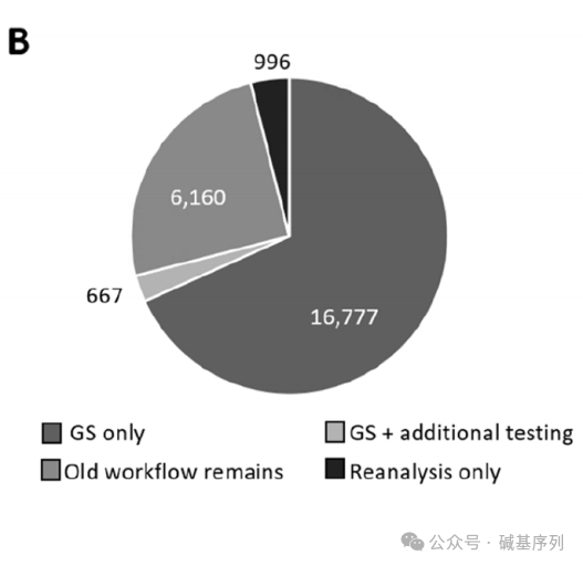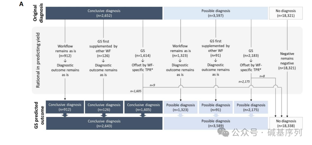 尽管失去了一些阳性诊断,但仍提高了整体的诊断率。到目前为止,GS的整体诊断优势仍有限。例如,GS在神经发育障碍疾病中的诊断率仅提升了1.3%,在先天性四肢畸形中的诊断率提升了17%。