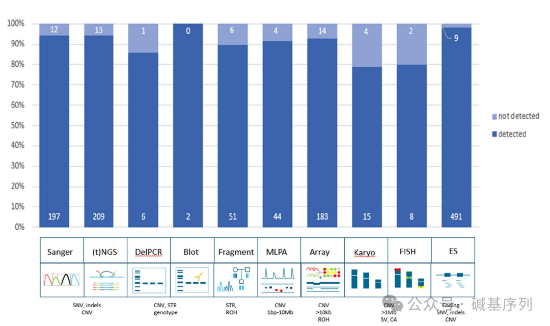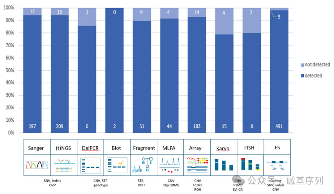 在先前的检测诊断流程中378个病例使用的是靶向分析,如特定变异位点、单一基因或小基因组;617个病例使用的是基因组检测法(如基因panel或其他全基因组分析);其余5例同时使用两种方法。