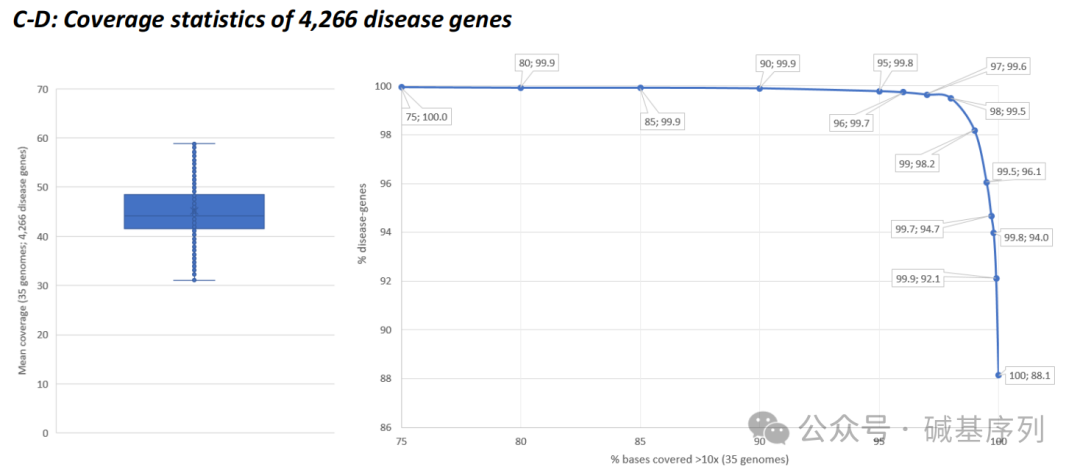 变异知识库(Variant Knowledge Base, VKGL)、临床变异数据库(ClinVar)中提取了58,393个常染色体显性或隐性遗传疾病相关变异的基因组坐标,分析35个基因组数据集中的这些变异位点,结果显示:99.5%的变异测序深度10倍。