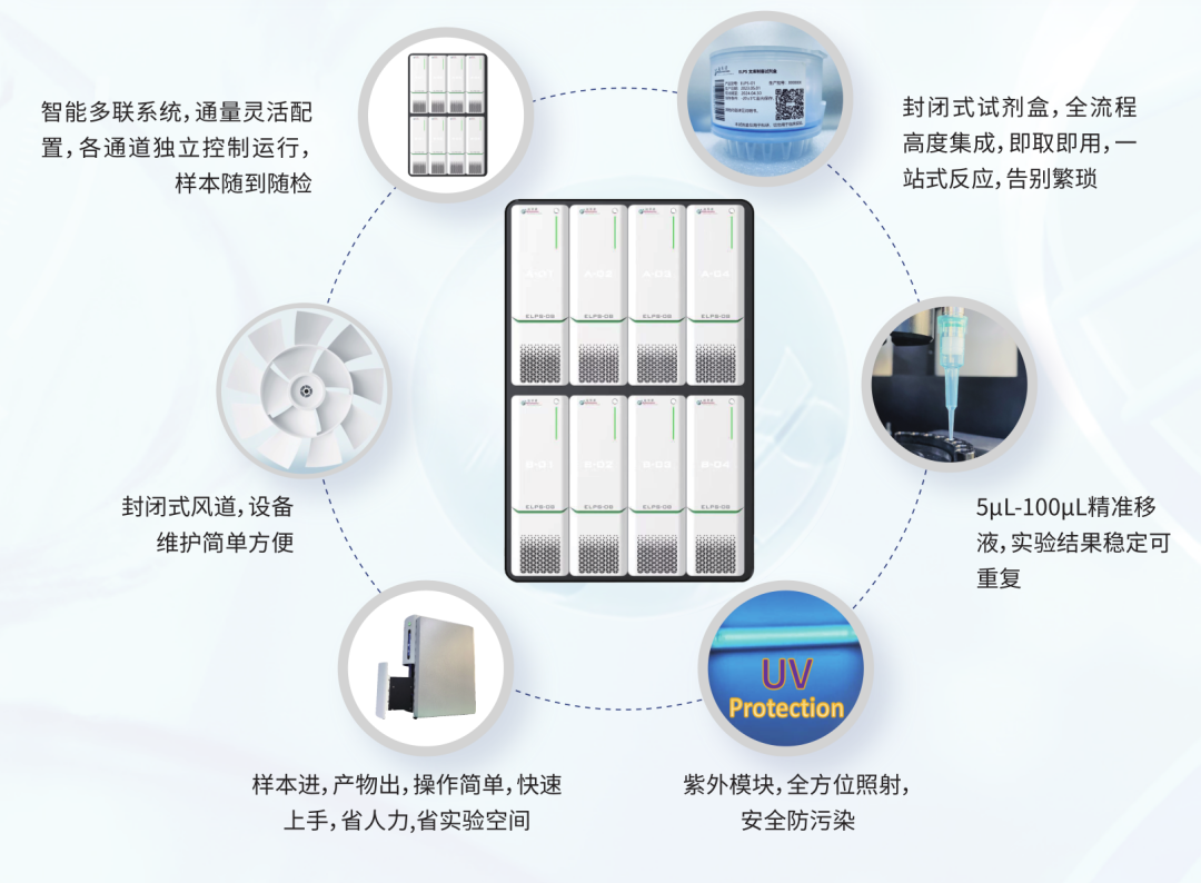 全球感染性疾病发病率不断上升,病原体呈现多样化和复杂化的发展趋势,感染成为急危重症患者死亡的主要原因之一。病原微生物的准确检测、快速鉴定是精准诊断感染性疾病的先决条件和确定治疗策略的关键点。病原靶向测序(targeted NGS, tNGS)检测技术以价格和多靶标的独特优势在感染领域异军突起。 为解决临床病原检测精准度、效率以及成本问题,铭毅智造基于自主研发的单色荧光基因测序仪UniSeq2000,倾心推出从仪器、诊断试剂、检测报告,到技术支持等一站式全流程tNGS整体解决方案。该方案可真正实现病原微生物检测本地化,提升临床数据安全性,降低测序平台搭建成本和单次测序成本,助力目标病原的快速、准确、敏感检测。 tNGS整体解决方案产品亮点 该整合方案中,在提取、建库、测序、分析全流程环节,均配备自动化设备,极大降低操作难度和人工成本 整体解决方案输出,方便本地化实验室直接引入,降低搭建成本。测序平台通量灵活,根据样本量调整测序模式 从操作培训到售前售中售后问题,解决铭毅智造提供专业的全流程技术支持服务 检测范围涵盖呼吸系统常见重要病原体、较强致病性的真菌和非典型病原体,以及部分寄生虫。 多学科专家团队建库检测范围,适用性广泛 检测范围: 适用场景&科室: 独特的样本前处理技术 对于难提取真菌和细菌优化形成独特的破壁方案;针对RNA病毒的特点,设计针对性提取策略。最大程度提高各类型病原微生物的提取效率。 多靶标扩增引物设计 高包容性引物设计:综合微生物系统学和医学划分标准,引物覆盖种内代表性菌株,有效降低漏检风险; 高拷贝数靶标、多对引物设计:选取高拷贝数靶标,引入多对引物扩增方案,提高检测精准度,降低人源及背景菌群基因组干扰,辅助排除环境污染。 “全自动封闭式基因测序文库制备系统” ELPS系统,将流程复杂的文库制备集成到一站,把“样本进,产物出”的全自动化基因检测理念真正落地。