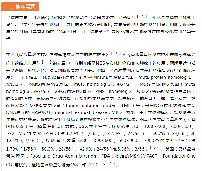 文章来源:中华检验医学杂志, 2023, 46(9): 879-882. 作者:张瑞 李金明 摘要 高通量测序即二代测序(next-generation sequencing,NGS)技术,由于显著增加测序通量,降低测序成本,可同时检测多个靶基因,从而解决了传统实时荧光聚合酶链反应(polymerase chain reaction,PCR)等技术检测位点数量有限的问题,目前已广泛应用于肿瘤、遗传病、感染性疾病以及无创产前检测等领域。NGS在肿瘤诊断与治疗中的应用是精准医学的重要组成部分,由于涉及的标志物多、临床指南中标志物不断更新、存在罕见变异位点等原因,基于NGS技术的肿瘤诊疗相关方法难以按照固定的体外诊断产品进行注册,欧美等国家临床实验室基本通过实验室自建检测(laboratory-developed tests,LDT)来实现应用。我国国家药品监督管理局(National Medical Products Administration,NMPA)目前批准的基于肿瘤诊疗相关NGS方法的试剂,检测基因数量仅2~10个,突变位点十分有限,难以满足临床需求。2021年,国务院发布了《医疗器械监督管理条例》,明确“对国内尚无同品种产品上市的体外诊断试剂,符合条件的医疗机构根据本单位的临床需要,可以自行研制,在执业医师指导下在本单位内使用”。该条例的发布标志着实验室自研试剂临床应用的开始,这也将成为NGS技术在肿瘤诊疗规范化应用的最重要途径。基于上述情况,本期专刊介绍了NGS技术在实体肿瘤、血液肿瘤临床应用的现状和进展、基于液体活检的最新研究和报道,供已开展或即将开展肿瘤相关NGS检测的临床实验室参考,并更好地从临床需要、自行研制和正确使用3个方面理解NGS在肿瘤诊疗中的规范化应用。