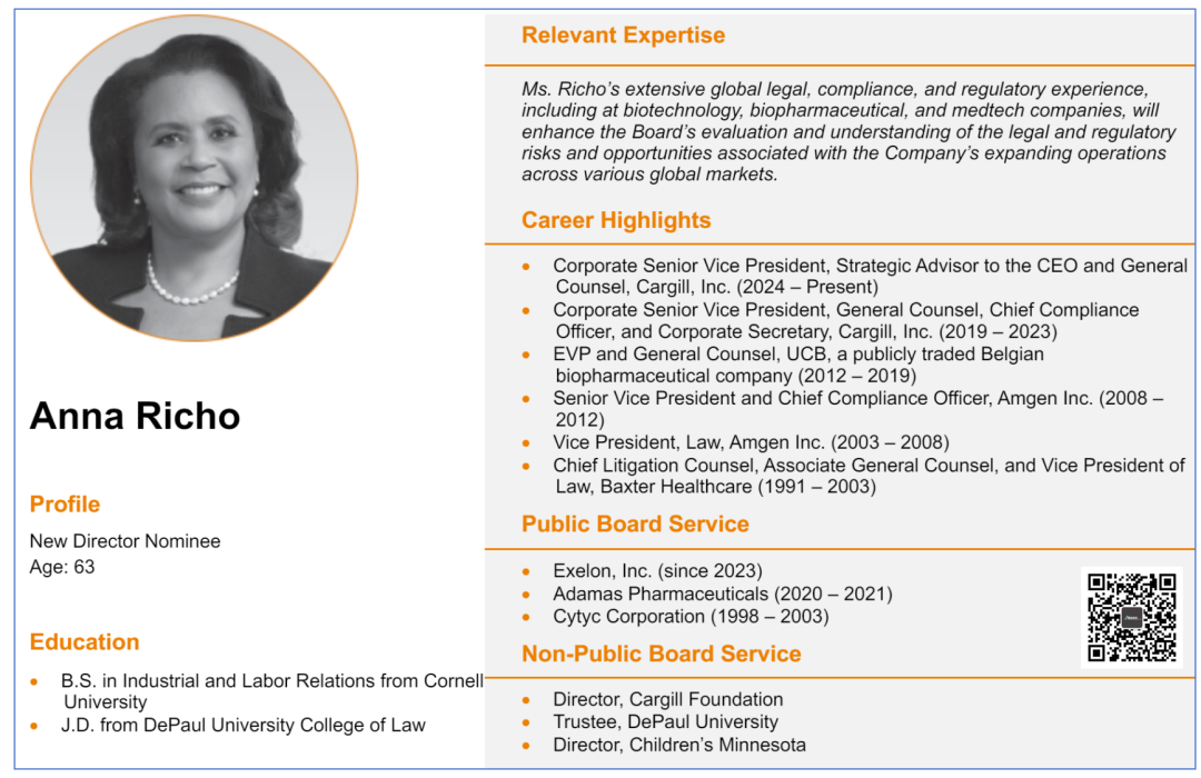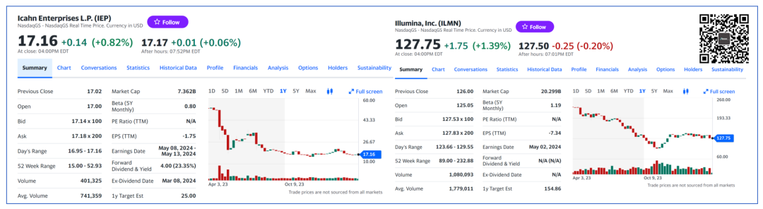 去年,在Carl Icahn与Illumina大战的“成果”主要是干掉了CEO Francis deSouza和董事张John Thompson。 当然,这里面还有个小的战利品:Andrew Teno在Illumina的董事会席位。 这段历史,各位有兴趣可以点击这里详细了解一番。 不管怎么说,这个战利品不算大,好歹也是个董事会的席位。 不过,根据本次Illumina公布的董事会提名名单,似乎Andrew Teno要消失了。 从本次公开的提名名单中可以看出来,只增加了一名董事人选,而Andrew Teno则不见了。 新提名的Anna Richo 在Depaul University获得法学博士学位,后主要在药圈任合规、法律顾问等工作。 2019年开始,Anna Richo担任Cargill(嘉吉)公司的高级副总裁和合规事物总负责人。 看起来一个对生命科学、医药领域的法律法规非常熟悉的强人。 话说回来,Carl Icahn 的让步其实并不是突然之间的。 此前,路透社在2024年3月13日就提到了Icahn放弃Illumina董事会席位的事。 究其原因,可能有以下3点: 第一,Illumina更换CEO/董事长的诉求已经达到。 第二,拆分GRAIL的诉求已经达到。 第三,已经失去了再次挑战Illumina的天时。 随时Jacob Thaysen的上台,拆分GRAIL已经成了板上钉钉且刻不容缓的首要事项。 至于Carl Icahn是否能从中获益,我们并不清楚。 但是有一点可以肯定,这段事件他的日子也过的并不好。 近一年,Icahn的主要产业Ichan Enterprise LP(IEP)股价跌幅高达67%,甚至远远高于Illumina的44%。 所谓攘外必先安内,后宫都不稳了,哪有闲工夫到处招惹是非... PS:此前我好像忽略了个问题,CEO Jacob Thaysen 才48岁啊... 人比人...气死人... 相关资料: 注1:https://d18rn0p25nwr6d.cloudfront.net/CIK-0001110803/e22ccaa1-d59d-4fce-929d-f29f98931504.pdf 注2:https://endpts.com/icahn-gives-up-seat-on-illumina-board-backing-away-from-challenge-to-diagnostics-company/ |