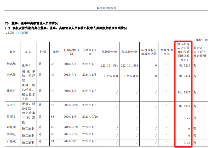 4月19日,亚辉龙发布2023年年度报告。报告期内公司实现营业收入20.53亿元,同比减少48.42%;归属于上市公司股东的净利润3.55亿元,同比减少64.92%;归属于上市公司股东扣除非经常性损益净利润2.20亿元,同比减少77.00%;基本每股收益0.63元/股。 亚辉龙近日发布2023年度年报,大体上浏览了一遍,发现了一个有意思的地方。同行很多IVD企业都在减员、缩减预算、高管降薪,没想到亚辉龙的高管团体2023年集体涨薪了,有的幅度还不小,我们来看和2022年的对比,单位都是万。 4月19日,亚辉龙发布2023年年度报告,同日亚辉龙发布公告称公司拟向全体股东每10股派发现金红利人民币2.73元(含税)(约1.55亿元)。截至2024年3月31日,公司总股本568,308.500股,以此计算合计拟派发现金红利人民币1.55亿元(含税)。本年度公司现金分红总额占合并报表实现归属于母公司股东净利润的比例为43.7%。亚辉龙发布未来三年 (2024-2026年)股东分红回报规划,公司实施连续、稳定的利润分配政策,公司的利润分配应重视对投资者的合理投资回报,在满足公司正常生产经营的资金需求情况下,如无重大投资计划或重大资金支出等事项发生,公司将积极采取现金方式分配利润。在满足现金分红条件时,公司每年应当以现金形式分配的利润不少于当年实现的可供分配利润的10%。