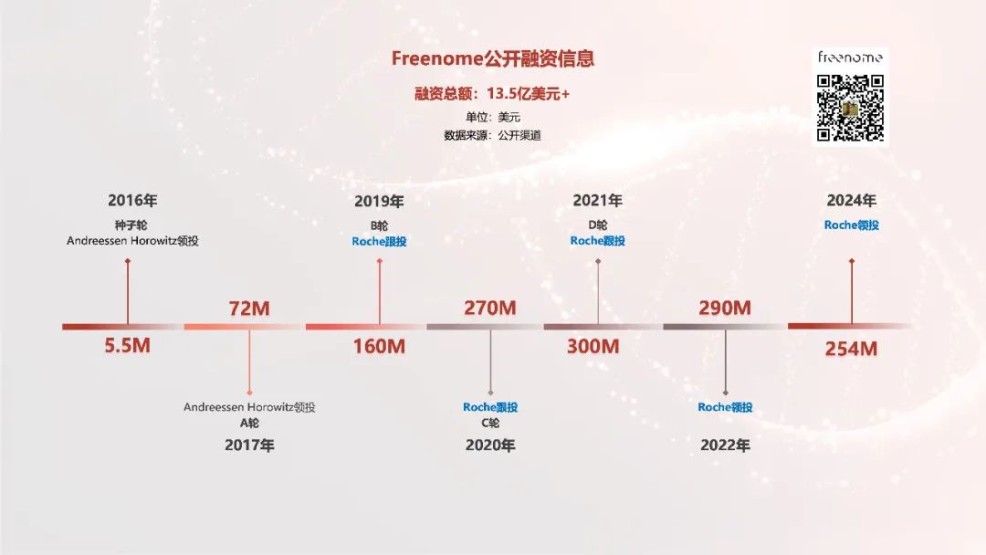 Freenome显然不是没钱的主,算上今年年初的18亿,从成立至今已经完成了接近百亿人民币(13.5亿美元)的融资。