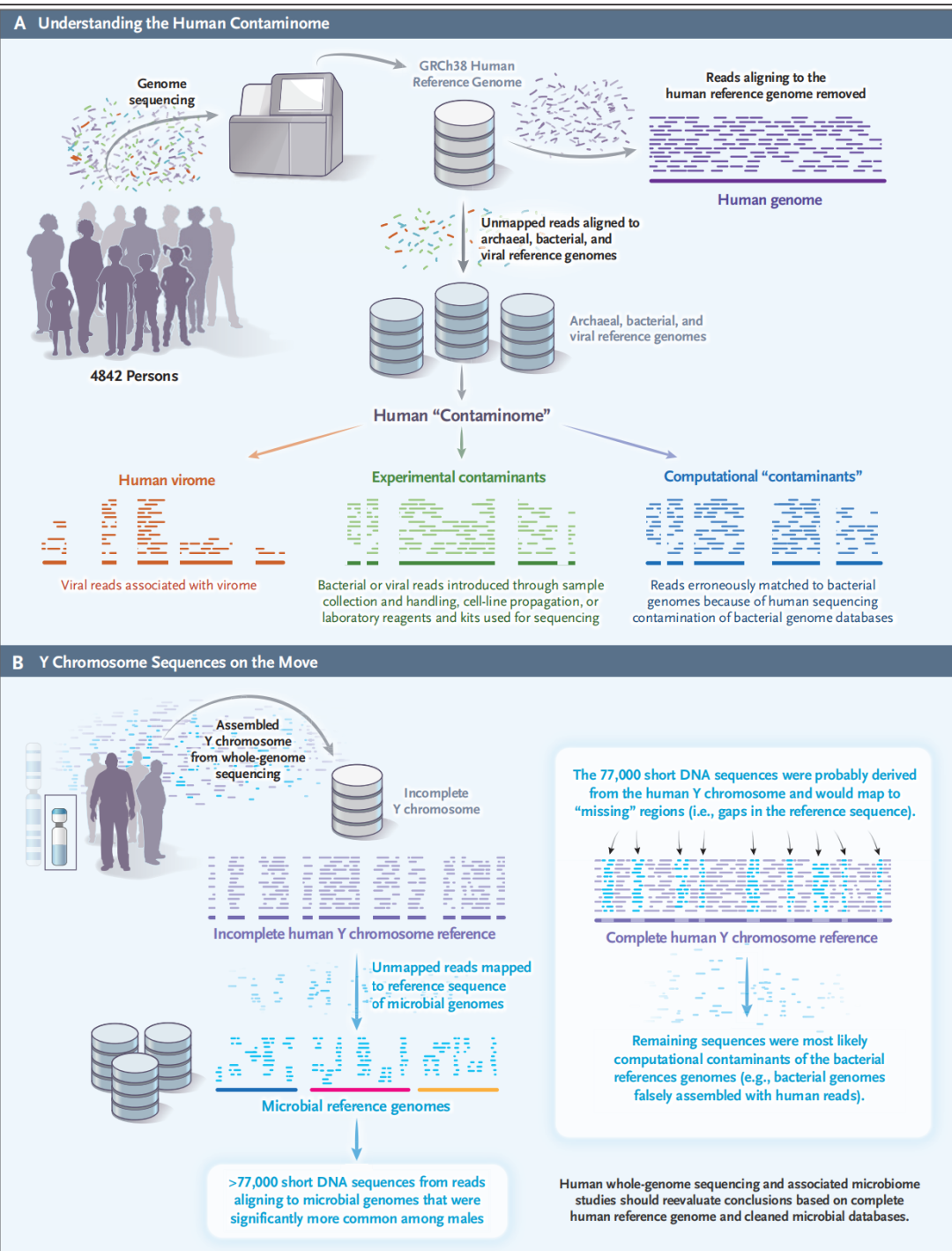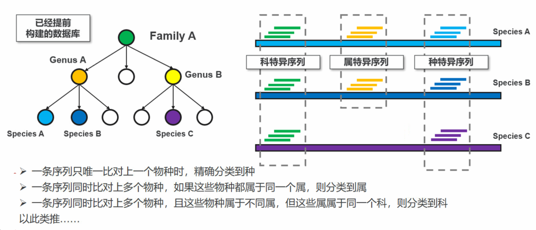 我2017年毕业以后进入头部基因公司医学信息中心做生信,前半年主要做NGS数据质控、RNA-seq、WGS和WES等比较传统的生信分析。2018年开始负责临床病原微生物基因检测产品的生信分析,也就是临床mNGS。 mNGS在临床上推广也是从那时刚刚开始,一个新人进入了一个新的领域,也算得上是最早的那批人了。2019年到现在的公司后至今还是一直在做mNGS,在mNGS领域摸爬滚打了近7年,应该算差不多可以入门了,也只会做这个。 虽然时至今日已经有很多关于mNGS性能评估及应用的文献或专家共识发表,但从跟很多医生或专家的交流中感受到,大部分人对mNGS的生信内容还是很模糊的认识。基因组数据库怎么来的,物种分类怎么做,背景菌怎么分析,假阳假阴怎么回事,分析结果准不准等等都是一些常见的问题。很多医生,包括监管部门都不会只满足于“科普型”的解释,都很关心这些问题的真正难点是什么?能不能解决?有没有具体的解决方案等等。而这一些问题都是少有甚至没有文献可以参考的。 这些问题总结起来就是:mNGS生信面临的真正挑战是什么? 这是一个非常宏大的问题,此外,临床mNGS完整流程包括:样本采集、运输、湿实验、干实验(生信)、临床解读等等一系列环节,每个环节都有非常深入的学问,并且环环相扣。 图1. mNGS全流程示意 生信其实跟每一个环节都关联,脱离了任何一个环节的信息都可能无法完成分析或者得出准确的结果。但限于能力和篇幅,这里仅聚焦于讨论纯生信的部分。 图2. mNGS湿实验和干实验的内容。湿实验属于生物学范畴,难点是要解决灵敏度的问题,样本里面有什么就能测出来什么;干实验是信息学范畴,难点是要解决特异性的问题,测序数据里面有什么就要准确鉴定出来什么,同时还要能区分其来源(来源于样本还是实验噪音)。 这些年无论是给内部培训,还是给外部分享,多多少少都有分享一些经验或看法。如今梳理总结一下,纯个人鄙见,不全面,也不一定对,欢迎交流。 要回答这个问题,我们得先从mNGS的临床需求入手。临床的需求是什么?mNGS可以解决临床的这些需求吗? 从应用场景的角度看,mNGS主要应用于疑难、急危重症的感染患者。 “疑难”说明可能常规的检验方法学都试过了,没有查出真正病原,所以对mNGS的需求就是具备“全面且准确”的检测能力,能覆盖传统方法学以外的检测范围或灵敏度。“急危重症”,说明时间等不起,需要尽快明确病原体马上对症下药,所以对mNGS的需求除了“全面且准确”外,还有“快”的需求。还有一点,从患者的角度考虑,还需要做到“经济可负担”。 “全面、准确、快、经济可负担”这些可能就是mNGS的核心问题。需要再次强调,mNGS是一个整体的技术,解决这些核心问题也是需要从全流程去考虑的,生信只是其中的一部分。如果将这些问题拆解到生信里面去,对应的几个关键点就是“基因组数据库全面(决定着检测范围)、物种分类鉴定准确、分析时间快、硬件成本可负担”等。 这里面的任何一点单独做到也许是简单的,但是要全部满足似乎就是一个“不可能三角”。基因组数据库做“全”了也许会因为基因组错误的积累或者同源干扰太多导至假阳假阴增加,无法做到“准”,也因为数据库太大导至分析时间长而无法做到“快”,或者靠堆硬件计算资源实现了“快”而导至“成本”很高。兼顾所有是mNGS生信的真正挑战所在。 先看看mNGS生信分析流程的一个例子: 图3. mNGS生信分析过程。主要过程为:测序>fastq拆分>数据质控>人源序列过滤>微生物数据库比对>种属分类鉴定>报告解读等。有些还可能包含耐药和毒力的分析过程。 人源序列过滤、微生物基因组数据库、分类鉴定算法、报告解读等这些内容是影响mNGS生信性能的关键所在。 人源序列过滤是保证mNGS结果准确的关键之一 因为标本是从人身上采集的,测序数据里面大部分序列都是人源的,可达95%以上,若湿实验环节没有去宿主措施甚至可达99%以上。如果不对这些人源序列进行过滤,在微生物数据库比对环节,一是因为数据量太大所需的比对时间特别长,二是因为基因组同源或者微生物污染人源序列的问题,导至很多微生物的假阳性检出。 人源序列过滤的挑战在于,不仅要过滤,还要过滤得“全”。为什么要过滤得“全”?因为微生物基因组污染了大量的人源DNA,至于这些污染是怎么来的可以参考图4及其文献。 图4. The Human “Contaminome” and Understanding Infectious Disease. Simner PJ, et al. N Engl J Med. 2022 人类参考基因组不管是GRCh38,还是刚发布不久目前最完整的T2T-CHM13,或者黄种人的YH2.0,其实都还是个人基因组或者少数几个人的基因组。英国15万人群基因组测序项目的分析表明平均每个个体基因组存在约341万个SNPs或indels,且不同地域(欧洲、非洲、亚洲)人群间的变异差异更显著(https://doi.org/10.1038/s41586-022-04965-x)。对于人类来说,这个变异的比例也许很小,但是在mNGS测序数据里面,如果宿主序列占比为99%,人类序列过滤后即使只有1%的残留,在剩余的序列里面,人类的序列占比仍然高达约50%!这些序列在后续流程中都是要进行微生物数据库比对的,会产生多少假阳性? 我相信做过mNGS生信或解读的人在这点上是有体会的:明明已经过滤了人源序列,为什么检出的病原体序列拿去BLAST比对是时候还是会比上人的序列? 图5. 一例样本检出了Trichosporon asahii(阿萨希丝孢酵母),提取其序