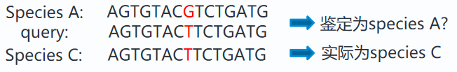 即: 尾部的比对出来了gap,因为参考序列是两个连续的C,实际上这种比对结果跟最初假设的结果是等同的。间隙开放罚分1,错配罚分是2,软切罚分是5,得分最高的是间隙开放策略。这种比对结果是1个错配和一个单碱基的gap,ANI是48/50=96%,可以过95%的阈值,比对上了。 如果调整种子最小长度,设置为31(-k 31),这是kraken默认的k-mer长度,就会出现下面的情况: