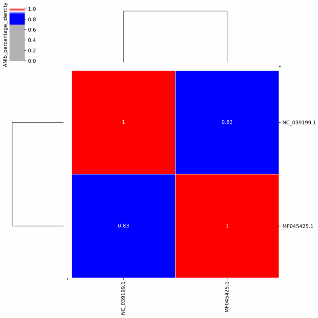 即: 比对的结果是直接将查询序列尾部的2个碱基给切除了(软切),因为软切罚分仅5分,而间隙开放罚分6,错配罚分4+4=8,因此得分最高的是软切策略。这种情况查询序列比对长度是48,同时有一个错配,其ANI是47/48=97.9%,如果以95%作为比对阈值的话,这种情况还算是比对上了。 如果我们调整参数,将错配的罚分降低至1分(使用-B 1参数),则会出现以下比对结果: