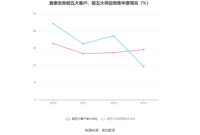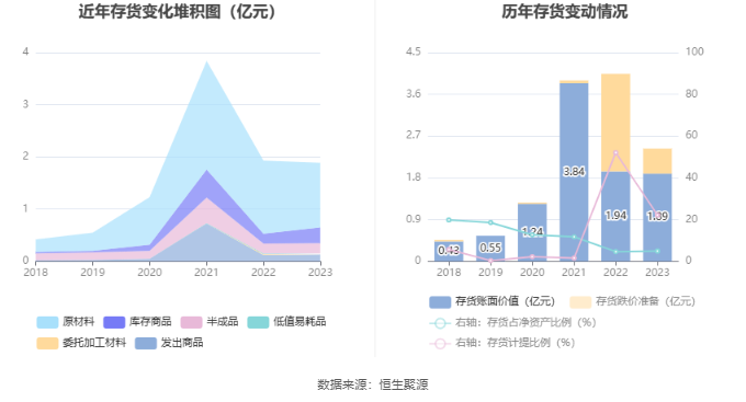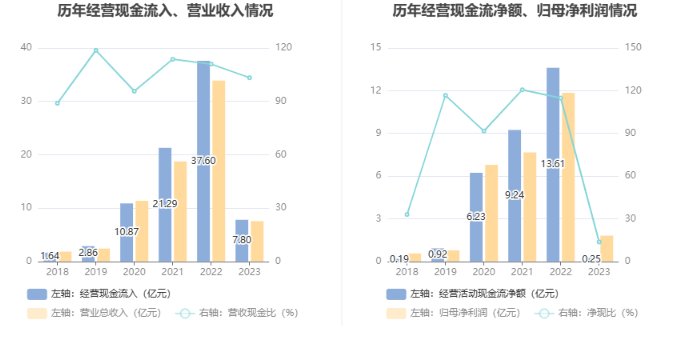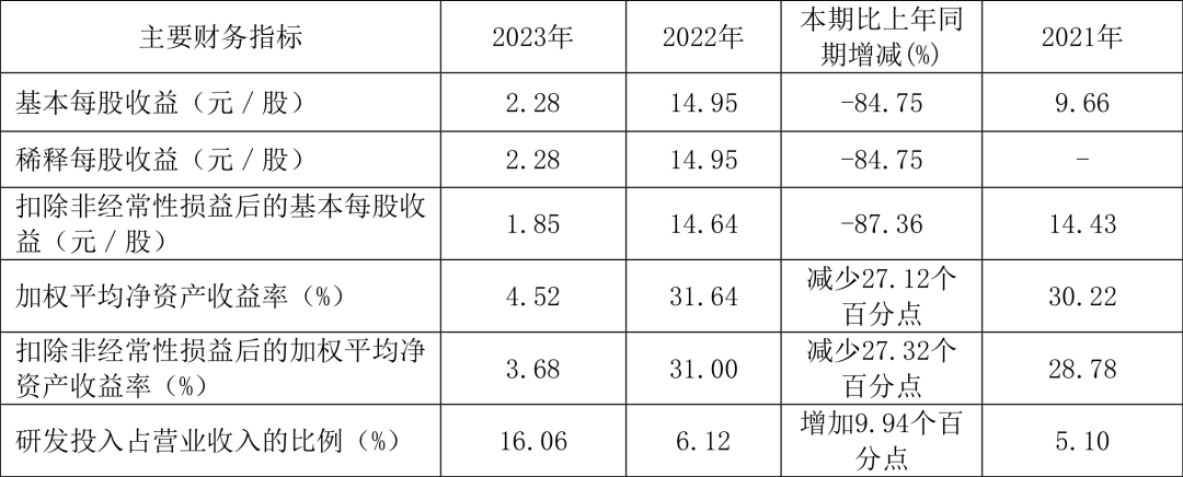 奥泰生物表示,2020年至2022年,公司经营业绩大幅增长主要来源于新冠检测产品销售相关业务的突发增长,未来公司的整体经营业绩与新冠疫情期间相比面临销售业绩大幅度下滑的风险。 分产品来看,2023年公司主营业务中,传染病类收入2.75亿元,占营业收入的36.48%;毒品及药物滥用类收入2.04亿元,占营业收入的27.00%;新冠检测类收入0.89亿元,占营业收入的11.80%。 以4月26日收盘价计算,奥泰生物目前市盈率(TTM)约为32.93倍,市净率(LF)约为1.55倍,市销率(TTM)约为7.88倍。 公司近年市盈率(TTM)、市净率(LF)、市销率(TTM)历史分位图如下所示: 数据统计显示,奥泰生物近三年营业总收入复合增长率为-12.73%,在体外诊断行业已披露2023年数据的29家公司中排名第23。近三年净利润复合年增长率为-35.70%,排名20/29。 截至2023年末,公司员工总数为1093人,2022年员工总数为1244人,减员151人,2023年人均创收69.05万元,人均创利16.52万元,人均薪酬15.53万元,较上年同期分别下降74.65%、82.66%、0.80%。 2023年,公司毛利率为48.78%,同比下降11.15个百分点;净利率为23.89%,较上年同期下降11.09个百分点。从单季度指标来看,2023年第四季度公司毛利率为51.28%,同比上升24.16个百分点,环比上升0.42个百分点;净利率为40.58%,较上年同期上升86.89个百分点,较上一季度上升22.90个百分点。 分产品看,传染病类、毒品及药物滥用类、新冠检测类2023年毛利率分别为45.35%、61.13%、54.81%。 报告期内,公司前五大客户合计销售金额1.46亿元,占总销售金额比例为19.38%,公司前五名供应商合计采购金额0.48亿元,占年度采购总额比例为29.24%。 数据显示,2023年公司加权平均净资产收益率为4.52%,较上年同期下降27.12个百分点。公司2023年投入资本回报率为3.68%,较上年同期下降26.89个百分点。 2023年,公司经营活动现金流净额为2476.37万元,同比下降98.18%;筹资活动现金流净额-5.59亿元,同比减少1.97亿元;投资活动现金流净额-1.41亿元,上年同期为-12.64亿元。 进一步统计发现,2023年公司自由现金流为-2.16亿元,上年同期为0.35亿元。 2023年,公司营业收入现金比为103.30%,净现比为13.71%。 营运能力方面,2023年,公司公司总资产周转率为0.17次,上年同期为0.78次(2022年行业平均值为0.60次,公司位居同行业13/38);固定资产周转率为3.02次,上年同期为19.41次(2022年行业平均值为5.40次,公司位居同行业4/38);公司应收账款周转率、存货周转率分别为6.30次、2.02次。 2023年,公司期间费用为1.99亿元,较上年同期减少1.66亿元;但期间费用率为26.30%,较上年同期上升15.54个百分点。其中,销售费用同比下降53.91%,管理费用同比下降14.7%,研发费用同比下降41.55%,财务费用由去年同期的-7092.70万元变为-5853.55万元。 资产重大变化方面,截至2023年年末,公司在建工程较上年末增加1054.30%,占公司总资产比重上升10.96个百分点;货币资金较上年末减少33.52%,占公司总资产比重下降10.20个百分点;交易性金融资产较上年末减少19.72%,占公司总资产比重下降3.29个百分点;其他流动资产较上年末增加536.78%,占公司总资产比重上升1.29个百分点。 负债重大变化方面,截至2023年年末,公司合同负债较上年末减少71.73%,占公司总资产比重下降2.13个百分点;应付账款较上年末减少54.66%,占公司总资产比重下降1.76个百分点;应交税费较上年末减少23.54%,占公司总资产比重下降0.29个百分点;其他流动负债较上年末减少98.58%,占公司总资产比重下降0.24个百分点。 从存货变动来看,截至2023年年末,公司存货账面价值为1.89亿元,占净资产的4.93%,较上年末减少506.51万元。其中,存货跌价准备为5357.36万元,计提比例为22.F。 2023年全年,公司研发投入金额为1.21亿元,同比下降41.55%;研发投入占营业收入比例为16.06%,相比上年同期上升9.94个百分点。 年报称,2023年度,公司新增授权专利/软件著作权共37项,其中发明专利1项,实用新型专利18项,外观设计专利16项,软件著作权2项。截至2023年底,公司累计获得授权专利/软件著作权158项,其中发明专利29项、实用新型专利65项、外观设计专利60项和软件著作权4项。 在偿债能力方面,公司2023年年末资产负债率为6.91%,相比上年末下降4.26个百分点;有息资产负债率为0.39%,相比上年末上升0.21个百分点。 2023年,公司流动比率为11.53,速动比率为10.84。 年报显示,2023年年末公司十大流通股东中,新进股东为上证红利交易型开放式指数证券投资基金、国泰致远优势混合型证券投资基金、招商银行(34.480, 0.08, 0.23%)股份有限公司-国泰价值优选灵活配置混合型证券投资基金(LOF)、香港中央结算有限公司,取代了三季度末的国泰佳泰价值平衡股票型养老金产品-中国建设银行(7.120, -0.12, -1.66%)股份有限公司、姜正金、宓莉、国泰医药健康股票型证券投资基金。在具体持股比例上,宁波文叶创业投资合伙企业(普通合伙)、国泰江源优势精选灵活配置混合型证券投资基金持股有所上升。 筹码集中度方面,截至2023年年末,公司股东总户数为5949户,较三季度末下降了1647户,降幅21.68%;户均持股市值由三季度末的64.39万元上升至91.42万元,增幅为41.98%。 指标注解: 市盈率=总市值/净利润。当公司亏损时市盈率为负,此时用市盈率估值没有实际意义,往往用市净率或市销率做参考。 市净率=总市值/净资产。市净率估值法多用于盈利波动较大而净资产相对稳定的公司。 市销率=总市值/营业收入。市销率估值法通常用于亏损或微利的成长型
