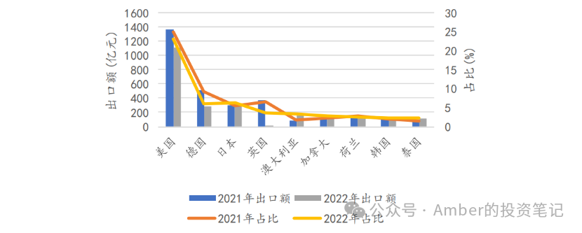 中国医疗器械出口不同国家金额及占比