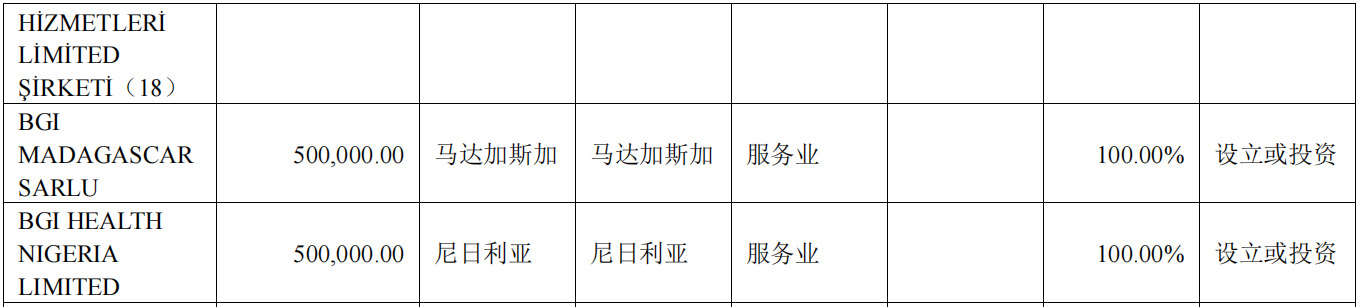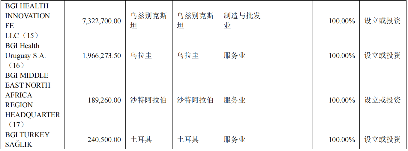 在海外业务战略合作方面,公司与印尼卫生部签订合作备忘录,双方将在基因组学、精准医学等方面展开合作。华大基因在泰国的合资公司兴泰基因(Bangkok Genomics Innovation Public Company Limited)与泰国国家能源公司(PTT PublicCompany Limited)下属医药公司 Innobic (Asia) Company Limited 等签署合作备忘录,相关方将建立长期战略伙伴关系,促进基因组学技术等在科研和临床领域的发展,共同推动建设国际生命科学创新中心;合作方将共同推动在泰国开展肠癌早期筛查,通过早发现、早干预,降低泰国晚期肠癌发生率,助力泰国加强肿瘤防治服务体系。与沙特公共卫生局(PHA)签署了合作备忘录(MoU),双方将在传染病筛查和检测的基础上进一步扩大合作,在生殖健康、癌症早期筛查、科研项目和人才培养等领域开展全方位合作,为沙特公共卫生事业注入新的动力。与哈萨克斯坦的纳扎尔巴耶夫大学签署了合作备忘录,以在纳扎尔巴耶夫大学医学院建立和发展个性化医疗和基因技术方面的合作。与智利知名院校马约尔大学(Universidad Mayor)签署合作协议,双方将共同建设智利首个基于高通量测序的临床肿瘤检测中心,为当地肿瘤防控方向提供完整的筛、诊、治闭环经验和方案。与阿根廷领先的精准医疗服务提供商 Biogenar 和诊断服务运营商 Biocodices 达成无创产前基因检测综合解决方案方面的合作。与哥伦比亚国家癌症研究所(INC 或 Instituto Nacional de Cancerologia)签署合作备忘录,旨在促进研究并进一步开发基于基因测序的宫颈癌和结直肠癌早期诊断的尖端解决方案。与塞尔维亚卫生部签署了关于公共卫生、精准检测合作的备忘录,促进基因组学检测在当地临床领域的应用,共同在当地开展肿瘤防控等公共卫生项目。与埃塞俄比亚卫生部旗下医学科学院 Armauer Hansen Research Institute(AHRI)正式签署了合作谅解备忘录,公司将帮助 AHRI 增强基因组学和精准医学检测能力,助力埃塞当地医疗卫生体系升级。在海外民生项目方面,公司探索满足不同国情、地区的需求,现已启动部分国家和地区的精准医学民生项目。报告期内,华大基因文莱合资公司 Borneo Genomics Innovation Sdn Bhd 与文莱卫生部签署国家宫颈癌筛查合作备忘录,双方基于HPV 筛查开展合作,助力当地医疗卫生体系升级。乌兹别克斯坦合资公司 Genscreen 承接当地政府民生筛查项目,在乌兹别克斯坦首都塔什干启动新生儿试点筛查项目,目标实现新生儿筛查全覆盖。