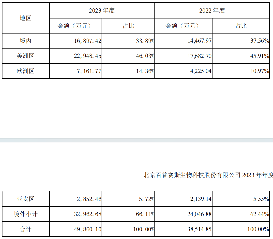 变动:境外地区收入同比上升 74.42%,主要是公司进一步拓展海外市场,占营业收入比例为 0.07%。从海外市场摸底情况来看,公司产品在技术创新水平、质量稳定性,以及设备自动化程度上均有一定优势,尤其是在日本、新加坡一些高端医院进行的试用、测试,反馈效果良好,增强了我们与国际头部品牌的竞争信心。报告期内,公司开始正式拓展海外市场,主要进行了专家走访、市场调研、品牌梳理以及商务、销售和参展等工作,进一步明确了海外市场的战略,以一带一路合作国家为主,设立了新加坡子公司,以东南亚、中东市场为先期拓展目标,充分发挥产品线齐全、性价比高的优势,把部分已获证的优势产品推向海外,包括 HPV 基因检测试剂盒、液基细胞和微生物处理及保存试剂、制片染色一体机、样品前处理系统、样本释放剂、实时镜下视野共享系统等。同时逐步明确海外市场产品注册报证规划,厘清 2024 年推广规划,完善包括市场、销售、产品、商务团队,以树立品牌为重点拓展节奏,包括细化联合大医院、参加专业病理会议、大专家合作等市场推广措施。海外市场也成为公司重要拓展方向之一,2024 年公司将明确国际注册报证产品系列以及进一步扩容海外团队,推动海外市场销售。