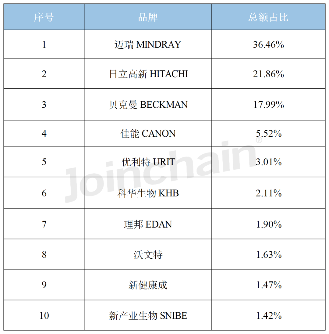 摘要: 2024年4月中,迈瑞排名第一,金额占比为36.46%