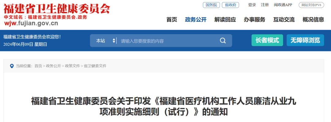近日,福建省卫健委发布关于印发《福建省医疗机构工作人员廉洁从业九项准则实施细则(试行)》的通知,目前该九项准则已经执行。
