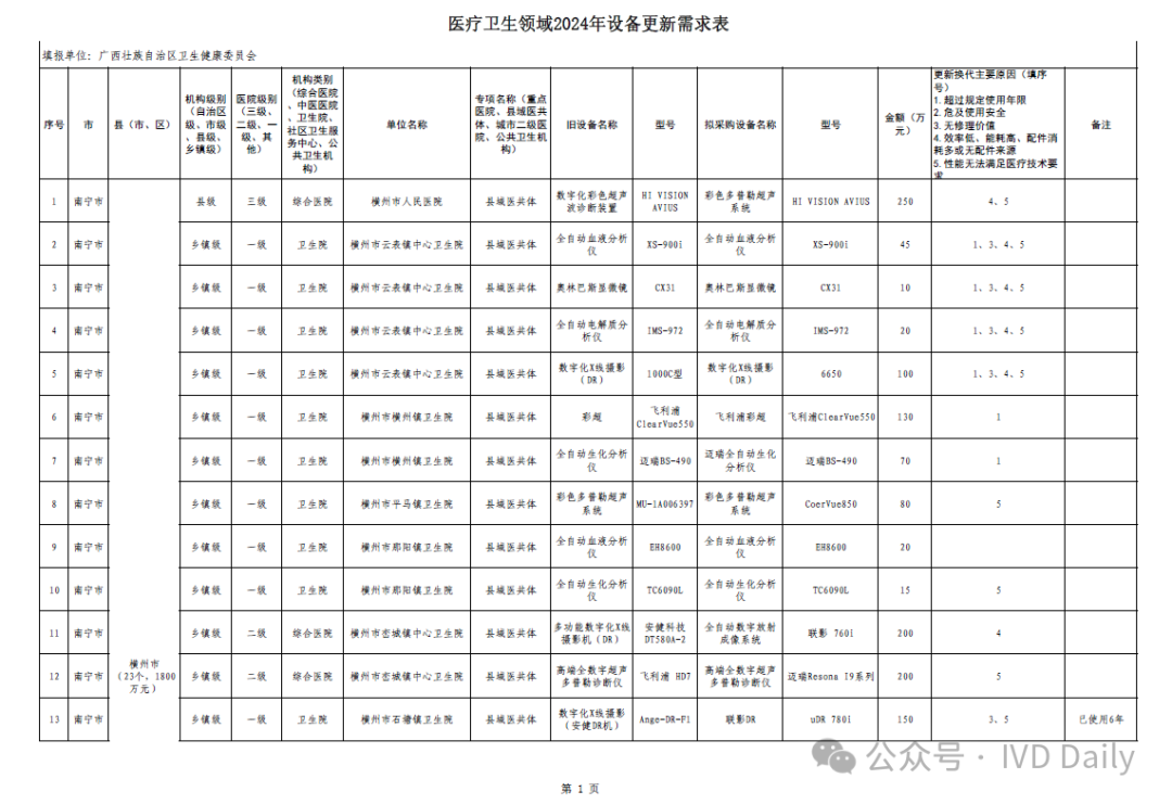 刚刚,广西卫生健康委发布2024年县域医共体设备更新项目可行性研究报告