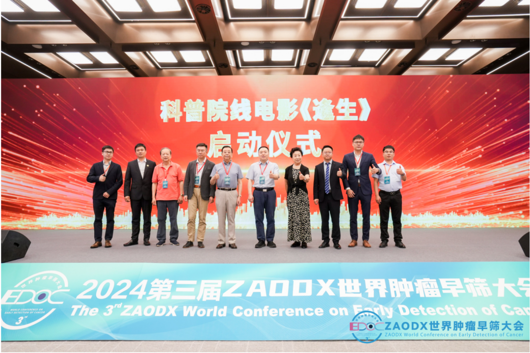 在开幕式上,中国首部肿瘤科普院线电影《逢生》项目在中国科教电影电视协会首席专家/原国家广电总局电影局局长/享受国务院津贴专家刘建中先生、中国抗癌协会肿瘤标志专业委员会荣誉主委邢金良教授、国家癌症中心癌症早诊早治办公室主任陈万青教授、科普工作者、高级动画设计师蔡之忠女士、科普工作者,原北京科教电影厂广告公司总经理刘建言先生、早筛网创始人&CEO陈赞泉先生、乐问医学执行董事段雄先生、MiRXES(觅瑞)集团联合创始人及中国区总裁邹瑞阳博士、奥明星程总经理林子奥先生的共同见证下顺利发布。 开幕式上,早筛服务生态网络(ESSE)在上海拓新健康促进中心监事长董栋先生、妙心生物创始人许蒙超博士、CIC 灼识咨询董事总经理刘立鹤先生、ECS早癌查创始人续青萍女士、全国县域肿瘤防治中心联合体副秘书长刘国浩先生、轻松集团执行副总裁马孝武先生、金域医学实体肿瘤疾病线高级总监刘向前先生、阿克曼病理市场部负责人高金龙先生、德能医学创始人刘晓微先生、早筛网创始人&CEO陈赞泉先生的共同见证下成立。