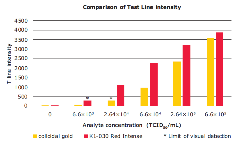 侧向层析检测技术以其快速、简便和成本效益高而著称,已成为医学诊断、环境监测和食品安全等领域不可或缺的工具。然而,它在追求更高灵敏度和更可靠结果的道路上仍面临挑战。默克公司新推出的深红色纳米微球产品,以其超越传统胶体金的性能,实现了更强烈的测试线信号、更快的可视化速度,以及可信赖的结果精度。 为了更生动地展示这些优势,我们的检测开发服务团队,使用默克Estapor® Red Intense微球配合Hi-Flow™ Plus膜进行了相关研究测试。上一篇文章中,采用Hbs Ag抗原检测模型显示,在低偶联物浓度下,Estapor® K1-040 深红色微球较竞争对手具有更强的灵敏度。此外,我们还特别对比了Estapor® K1-030 Red Intense微球与胶体金颗粒在FluA侧向层析模型中的性能表现。 更高的检测灵敏度 x 4倍 图1:FluA阳性样本的浓度梯度对比实验 我们采用了不同浓度的FluA阳性样本,通过层析检测仪对试纸条的检测线浓度进行定量分析。结果表明,在弱阳性样本的检测中,Estapor® Red Intense微球(红色条带表示)相较于传统的胶体金(黄色条带表示),展现出了更强的检测线信号。 这一结果不仅凸显了Estapor® Red Intense微球在低浓度样本检测中的高灵敏度,也验证了其在定量检测中的卓越性能。 更快的检测速度 x 5倍 图2:FluA模型中测试线的检测速度对比 在FluA阳性样本实验中中,我们通过肉眼观察记录了两种微球的测试线出现时间,以评估它们在实际应用中的响应速度。实验数据显示,Estapor® Red Intense微球的测试线以更快的速度显现,尤其在低浓度分析物检测中,其速度优势尤为明显,比传统胶体金快了五倍以上。 这一显著的速度提升不仅缩短了等待时间,也提高了检测流程的效率,使得Estapor® Red Intense微球在快速诊断领域中展现出其独特的技术优势。 一致的检测准确性 图3:Estapor®Red Intense微球与胶体金在FluA检测中定性检测对比, 浓度参见下表 表1:Estapor®Red Intense微球与胶体金在FluA检测可重复性对比 层析检测中,具有低检测限是关键要素,但获得可靠和可重复的结果同样至关重要。因此,我们对中度和强阳性样本,通过十次重复测试来评估我们的FluA 试纸条的精度。结果再次通过定性(图4)和定量(表2)进行了分析。 正如所示,Estapor® Red Intense微球和胶体金在精度/可重复性方面是可比的,平均变异系数分别为6.6%和6.5%,且在视觉感知上没有明显差异。 实验结果令人瞩目: 在FluA层析检测中,Estapor® K1-030 Red Intense微球相较于传统胶体金颗粒,在检测低浓度分析物时展现出显著的优越性。它不仅提供了更强的检测线强度,还实现了更高的灵敏度。更为重要的是,Estapor® Red Intense微球所提供的结果不仅精准,而且具有高度的可重复性,为科研和临床应用提供了坚实的信赖基础。由于篇幅所限,我们仅能摘选实验的精华部分与您分享。若您渴望深入了解每一步实验的巧妙设计与详细数据,敬请点击文末的'阅读原文',一探究竟。 订购信息 新品试用限时福利 如果您对深红色纳米微球新品感兴趣,即日起至6月30日,可扫描下方二维码提交需求,即有机会获得新品微球0.5g试用装福利。 *该活动仅针对企业客户。 *样品数量有限,根据实际参与及发放情况而定。 *收到申请后,我们会尽快审核并安排销售同事与您联系。 *本活动最终解释权归默克所有。 |