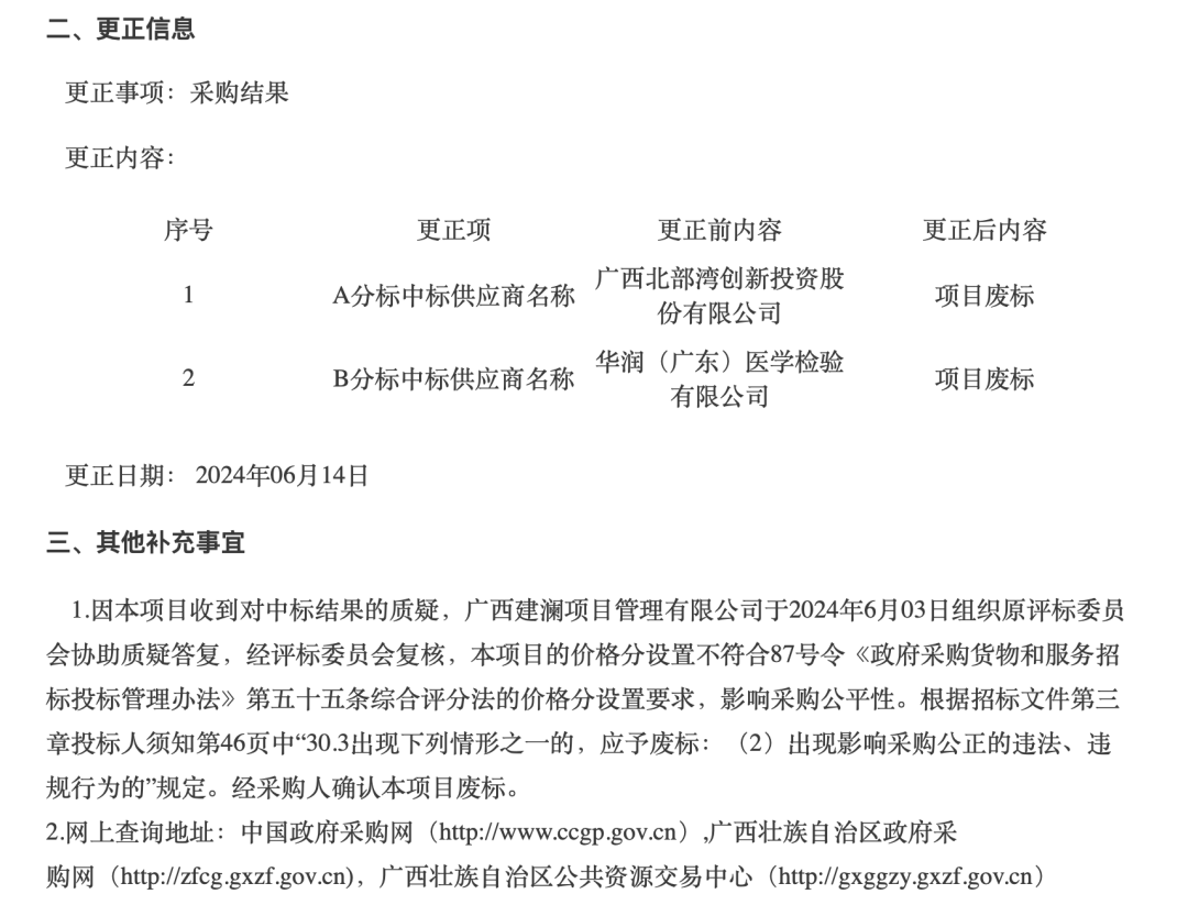 6月14日,根据中国政府采购网,迈瑞医疗1元钱中标的三甲医院生化免疫流水线项目被废标了,原因是“本项目收到对中标结果的质疑”。 该项目原本在5月22日中标,采购方是广西壮族自治区妇幼保健院,供应商为华润(广东)医学检验有限公司,采购项目是迈瑞生产的全自动生化免疫流水线1台,报价为1元。而预算达400万元。 6月19日,记者联系迈瑞医疗相关人士了解到,此次竞标产品来自迈瑞,但竞标全程由代理商负责,迈瑞尚不掌握具体废标原因。随后,记者又拨打了华润(广东)医学检验有限公司在企查查上的联系方式。截至发稿前,暂未拨通。 据了解,在疾病诊断领域,生化免疫流水线可以检测丙氨酸氨基转移酶、白蛋白、尿酸、肌酐、甘油三酯、葡萄糖、抗链球菌溶血素、总β人绒毛膜促性腺激素、促肾上腺皮质激素、胰岛素、癌坯抗原等,应用于肝脏、肾脏、生殖、心血管、内分泌、妇科、肿瘤等疾病诊断中。数据显示,生化免疫诊断约占据整个体外诊断的55%。 随着医疗水平和人们对健康生活重视程度的提升,医院对更高通量的检测速度需求也在同步提升,生化免疫流水线已成为体外诊断市场的重要发展产品之一。近年来,在此领域中的超低价中标也绝非个例。 今年1月,福建省漳州市卫生健康委员会(漳州市医用设备集中采购工作小组办公室)发布生化免疫流水线统招分签采购项目结果公告。采购的是亚辉龙等品牌的3条生化免疫流水线,由福建片仔癀诊断技术有限公司担任供应商。其中,3条流水线预算375万,最高限价306万,中标价3分钱,平均每条流水线中标价格仅1分钱。 去年11月,玉林市红十字会医院采购全自动免疫分析仪、全自动生化流水线,新产业产品以1元中标,供应商为江西象轩商贸有限公司。 2022年4月,大连医科大学附属第三医院发布采购项目成交公告,罗氏诊断全自动生化免疫流水线系统中标,中标金额为1元钱,供应商是重药控股(大连)有限公司。 2022年5月,东莞市人民医院一则医疗设备采购项目结果公告显示,供应商广州标智医疗科技有限公司参与投标的一款日立全自动生化分析仪中标价格为0.01元。不过后来投标企业选择了弃标。最终罗氏诊断以999元中标。 为何超低价投标屡见不鲜?在体外诊断行业,设备与试剂是紧密捆绑的。医疗设备免费或低价进入医院,而后通过仪器的诊断试剂获取主要收入。也就是说,在超低价投放设备后,企业主要依靠设备消耗的试剂作为主要收入。类似于“剃刀+刀片”商业模式的用“一次消费”换取“终身锁定”的形式。 不过在类似超低价中标的情况中,废标情况并不多见。根据中国政府网发布的公告,因本项目收到对中标结果的质疑,广西建澜项目管理有限公司组织原评标委员会复核,本项目的价格分设置不符合相关要求,影响采购公平性。招标中出现影响采购公正的违法、违规行为。经采购人确认本项目废标。也有媒体将此次废标解读为:是向行业里长期以来的潜规则说“不”。 |