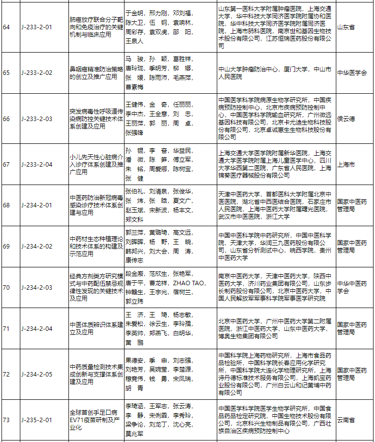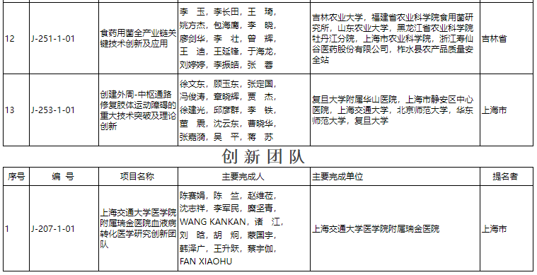 6月24日,新华社受权发布《中共中央 国务院 关于2023年度国家科学技术奖励的决定》。 《决定》指出,为深入贯彻习近平新时代中国特色社会主义思想和党的二十大精神,深入实施科教兴国战略、人才强国战略、创新驱动发展战略,中共中央、国务院决定,对为我国科学技术进步、经济社会发展、国防现代化建设作出突出贡献的科学技术人员和组织给予奖励。 根据《国家功勋荣誉表彰条例》、《国家科学技术奖励条例》的规定,经国家科学技术奖励评审委员会评审、国家科学技术奖励委员会审定和科技部审核,党中央、国务院批准并报请国家主席习近平签署,授予李德仁院士、薛其坤院士国家最高科学技术奖;党中央、国务院批准,授予“拓扑电子材料计算预测”国家自然科学奖一等奖,授予“三维流形的有限复叠”等48项科技成果国家自然科学奖二等奖,授予“集成电路化学机械抛光关键技术与装备”等8项科技成果国家技术发明奖一等奖,授予“绿色生物基材料包膜控释肥创制与应用”等54项科技成果国家技术发明奖二等奖,授予“复兴号高速列车”等3项科技成果国家科学技术进步奖特等奖,授予“‘深海一号’超深水大气田开发工程关键技术与应用”等16项科技成果国家科学技术进步奖一等奖,授予“耐寒抗风高产橡胶树品种培育及其应用”等120项科技成果国家科学技术进步奖二等奖,授予约翰·爱德华·霍普克罗夫特教授等10名外国专家中华人民共和国国际科学技术合作奖。 医药卫生领域有32个项目和1个创新团队获奖,其中,一等奖1个,二等奖31个。名单如下: 2023年度国家自然科学奖获奖项目目录 2023年度国家技术发明奖获奖项目目录(通用项目) 2023年度国家科学技术进步奖获奖项目目录(通用项目) |