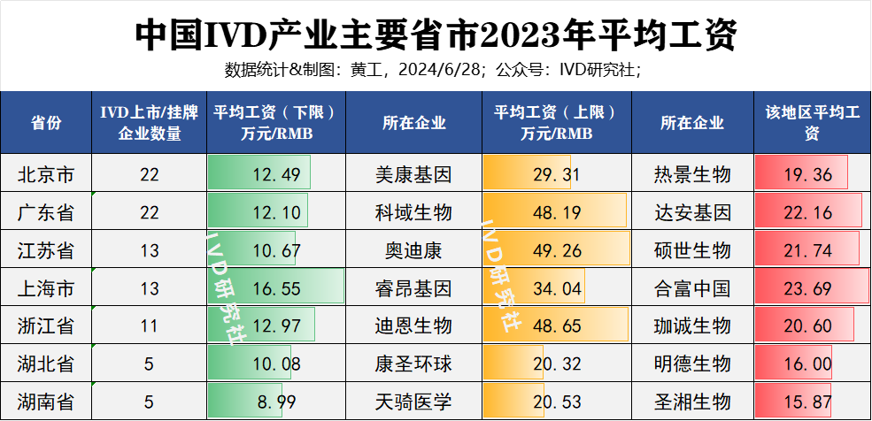 【IVD薪酬盘点】专栏,分成5个篇章:一,平均工资篇;二,董事长和总经理篇;三,高管团队篇;四,研发团队篇;五,销售团队篇。后续将陆续发布。