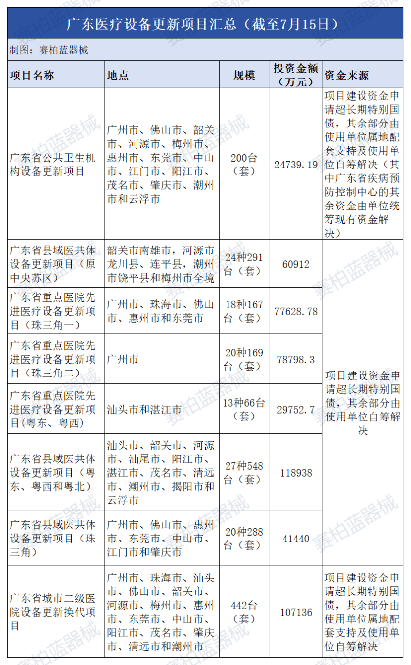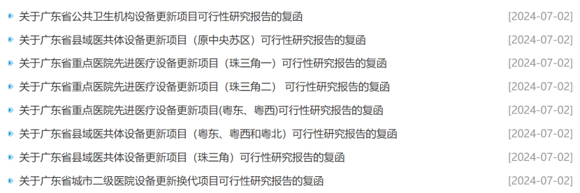 7月2日,广东发改委更新一批医疗设备更新项目可行性研究报告的复函。广东此轮医疗设备更新项目总投资超53亿元,涉及八大项目