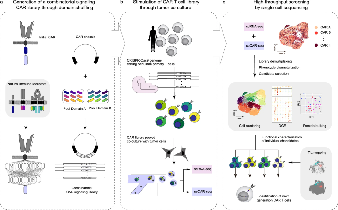 也有文章通过信号域改组和单细胞测序加速CAR-T细胞工程,这方法是:speedingCARs: accelerating the engineering of CAR T cells by signaling domain shuffling and single-cell sequencing