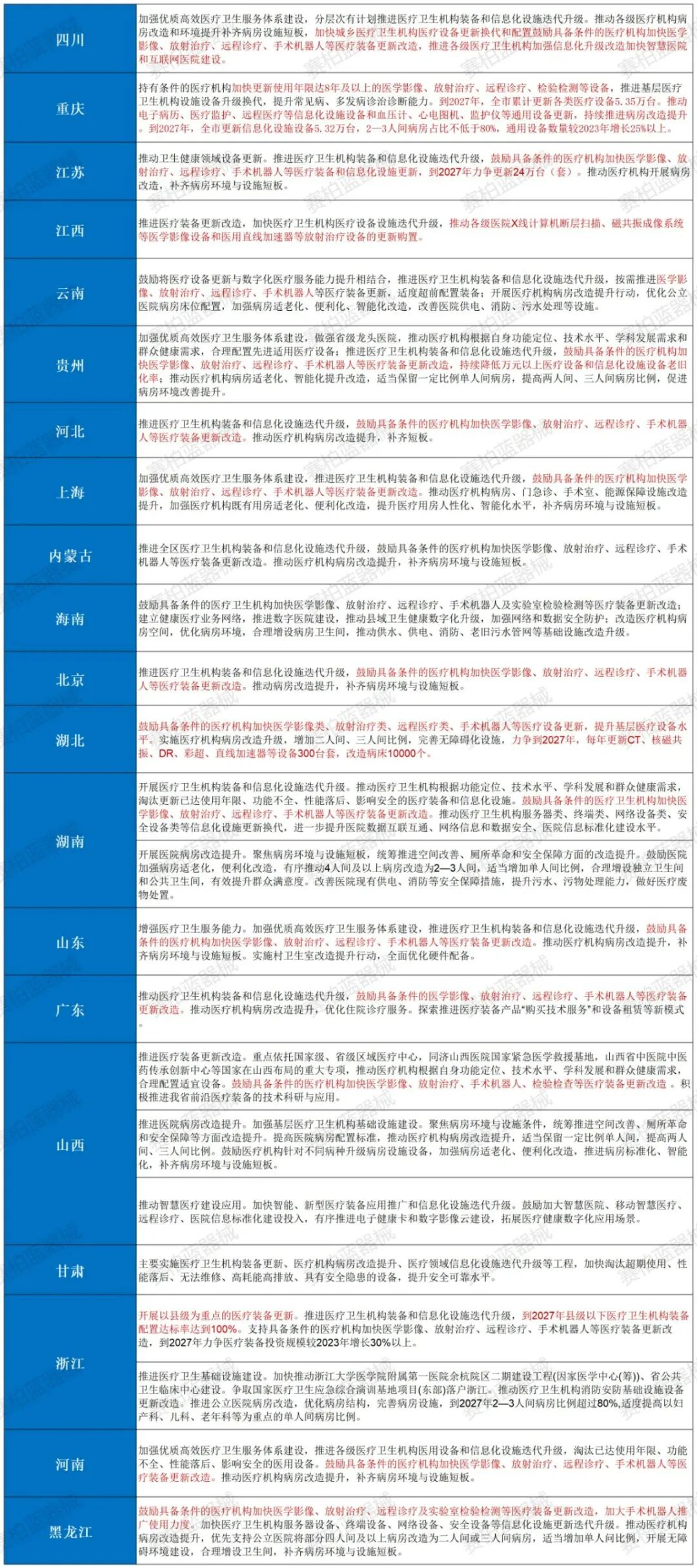 此外,江苏、广东、湖北等地也公布了具体更新目标,帮助相关医疗设备企业开展更为精准的布局。