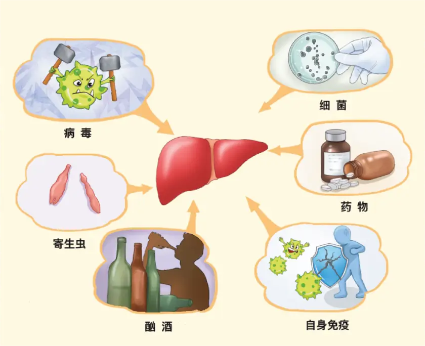 今年7月28日是第14个“世界肝炎日”,今年我国的宣传主题是:“消除肝炎,积极行动”,号召全社会积极行动,最大限度遏制新发感染,落实早预防、早检测、早治疗的“三早”措施,有效发现和治疗患者,切实减轻疾病负担,尽早实现“消除病毒性肝炎公共卫生危害”的目标。 肝脏是人体消化系统中最大的消化腺,也是新陈代谢的重要器官。可以通过:①分泌胆汁而促进胃肠道食物消化;②通过三羧酸循环调节和促进糖原、蛋白质、脂肪和碳水化合物代谢;③造血、分泌合成大量凝血因子;④解毒,体内产生的毒物、废物,还有吃进去的有一定毒性的物质,都在肝脏里面进行解毒。 肝炎是指肝脏发炎,通常是指由多种致病因素,如病毒、细菌、寄生虫、酒精、药物、自身免疫因素等使肝脏细胞受到破坏,使肝脏功能受到损害。 病毒性肝炎,是由病毒引起的危害我国人民健康的主要传染病,病毒性肝炎按照其病毒系列不同分为甲、乙、丙、丁和戊型肝炎五种,号称“肝炎五毒教“或“肝炎五兄弟”。 肝炎的病程一般都比较长,治疗难度相对比较大,费用也比较高,不仅影响工作和学习,也给患者造成很大的精神压力和经济负担。长期罹患乙肝、丙肝,会引起肝硬化;肝硬化结节恶变以后,会发生肝癌。不仅如此,随着肝炎病程的进展,肝炎会侵犯至周围的器官组织,使局部组织器官发生病变,严重时便会诱发糖尿病、脂肪肝以及多发性神经炎等并发症。因此,乙肝和丙肝在我国已经成为了危及国人健康的最普遍疾病。给国人的身体和精神上造了成多重伤害。 (1)甲型肝炎 是由甲型肝炎病毒引起的一种急性自限性传染病(可自愈),人群对其普遍易感,消化道传播,又称粪—口传播,也称为肠道传播,即被污染的食物和水进入消化道引起感染,如患者食用未煮熟的牡蛎、蛤、蚝等水产品时,有较高的感染甲型肝炎病毒的风险。是“病从口入”的典型代表。该病毒不耐高温。 (2)戊型肝炎 与甲肝病毒有点像,也是通过污染的水源传播。相比较甲肝病毒,戊肝病毒耐高温。 (3)乙型肝炎病毒 最为常见,主要通过血液、体液、母婴垂直传播和性传播。极少量含有乙肝或丙肝病毒的血液或血制品进入人体后也可导至感染,输血、血液透析、器官移植都可以传播。 全世界约有20亿人感染了乙型肝炎病毒,其中慢性感染者3.5亿,每年有50至70万人死于乙型肝炎病毒感染。 截至2023年7月我国各类肝脏疾病患者达4亿多人,是其名符其实的“肝炎大国”,约1/10的人群为乙肝患者。 大约85%的肝癌患者携带有乙肝病毒。目前尚无好的治疗药物。乙肝病毒常寄生在肝细胞内,本身并不引起肝脏损伤,当机体免疫系统捕捉到乙肝病毒侵入时,免疫细胞遂和肝细胞中的“乙肝病毒”开始掐架,而肝细胞作为交战的主战场,长此以往,肝细胞发生变性、突变,甚至肝硬化,最终导至肝癌的发生。 (4)丁型肝炎病毒 有点像“寄生虫”,引起丁型肝炎需要借助乙肝病毒的外壳(表面抗原)才能复制生存,可以说丁肝病毒是乙肝病毒的“忠实粉丝”。因此,患者往往是在感染乙肝的基础上,才会感染丁肝。 (5)丙型肝炎病毒 五兄弟中,丙肝病毒最为狡猾,也是通过血液传播,但它更擅长隐藏,很多患者感染多年都不知道,无法完全被免疫系统清除,易形成慢性携带状态,且丙肝病毒比乙肝病毒更“凶猛”,可直接破坏肝细胞导至肝硬化,其代谢产物也会增加患肝癌的风险。全球约有1.3至1.7亿人为慢性丙型肝炎病毒感染,估计每年有35万人因与丙型肝炎相关的肝脏疾病死亡。 (1)血液生化及免疫学检测 静脉采血检查肝细胞是否受损或者是否存在脂肪肝以及急慢性肝炎、包括乙肝五项(定性/定量)、肝功能、血常规、HBV-DNA定量、丙肝抗体及丙肝RVA定量、肝纤维化五项、AFP、IVKA-II等。 (2)尿液检查 乙肝性肝硬化伴其相关肾炎时可监测出尿蛋白。胆汁淤积造成黄疸时,尿胆红素阳性,尿胆原阴性; 肝细胞损伤引起黄疸时,尿胆原增加。 (3)肝硬度检测 肝硬度检测就是通过肝脏弹性硬度检测仪检查肝纤维化情况,分析肝纤维化和肝硬化的程度。肝硬度检测具有无创无痛、快速简便、安全准确的优点,能快速量化肝脏硬度。 (4)超声检查 超声检查可观察肝脏表面粗糙程度,肝脏实质回声是否增强,其静脉血管粗细、狭窄等。 坚持早预防,早检测、早诊断、早治疗,提升公众的健康水平,努力消除肝炎的危害。 (1)接种肝炎疫苗 预防病毒性肝炎,接种肝炎疫苗是目前最有效的预防方法 。甲肝疫苗、乙肝疫苗和戊肝疫苗对预防相应的病毒等性肝炎有很好的作用。 我国曾是HBV高流行区,自2002年将乙肝疫苗纳入儿童常规免疫程序以来,HBV感染率和肝癌发病率大幅度下降。 (2)预防乙肝和丙肝,①慎重使用各种血液制品;②在注射药物时,一定要使用一次性注射器。③在使用医疗器械时,一定要严格进行消毒处理。④避免到不正规的纹身店、美容机构及牙科消费。⑤对于感染乙肝病毒的备孕妇女,可根据体内病毒载量,选择在孕期使用抗病毒药物阻断母婴传播。⑥男男同性行为和有多个性伴侣者,均应使用安全套。 (3)甲肝和戊肝主要通过粪口途径感染,常见的是经水、食物或日常接触传播。应特别加强饮食卫生,如外购的肉类熟食,必须充分加热后再吃,不喝生水,饭前便后洗手、牙刷等私人物品应避免与他人混用,预防病从口入。戒烟戒酒,烟酒对肝脏的损害非常大。