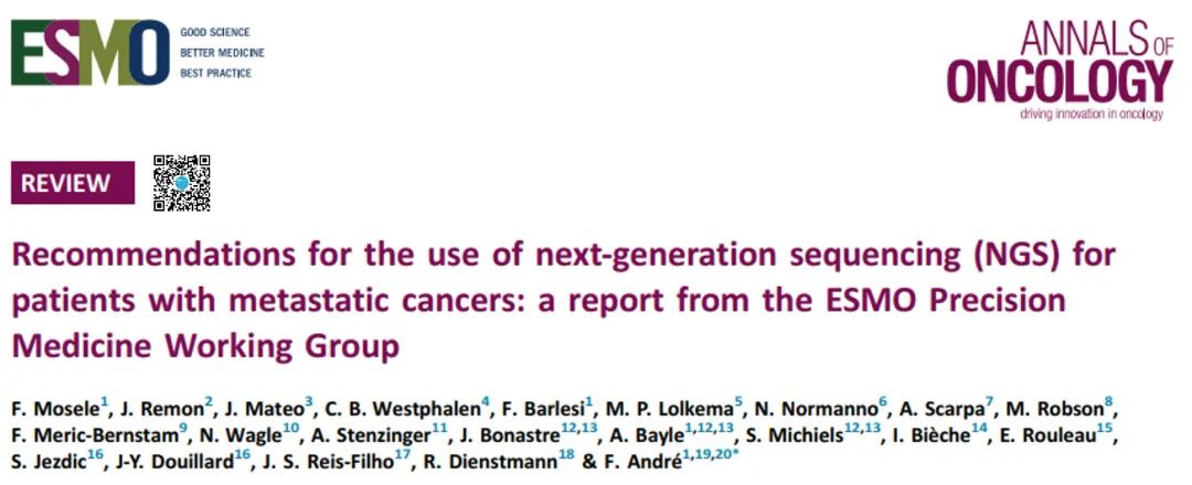 2.Mosele F, Remon J, et al. Recommendations for the use of next-generation sequencing (NGS) for patients with metastatic cancers: a report from the ESMO Precision Medicine Working Group. Ann Oncol. 2020 Nov;31(11):1491-1505.
