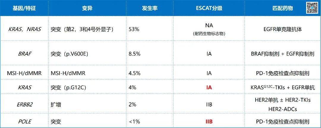▲ 晚期结直肠癌检测基因列表(ESCAT I/II级)
