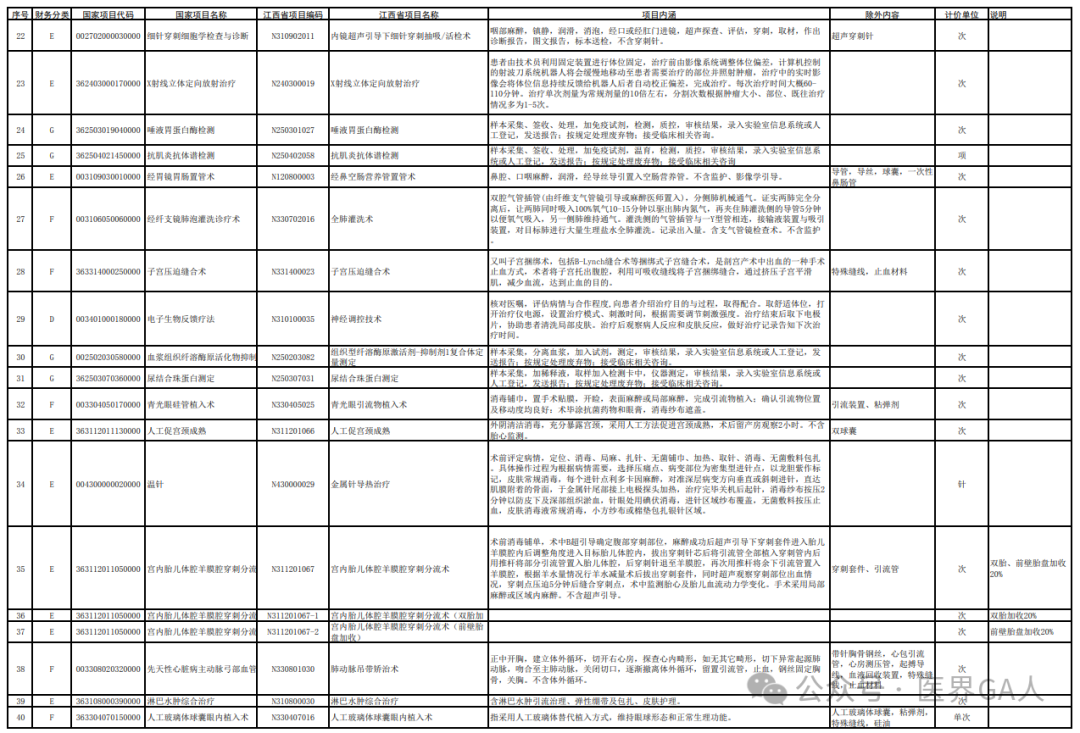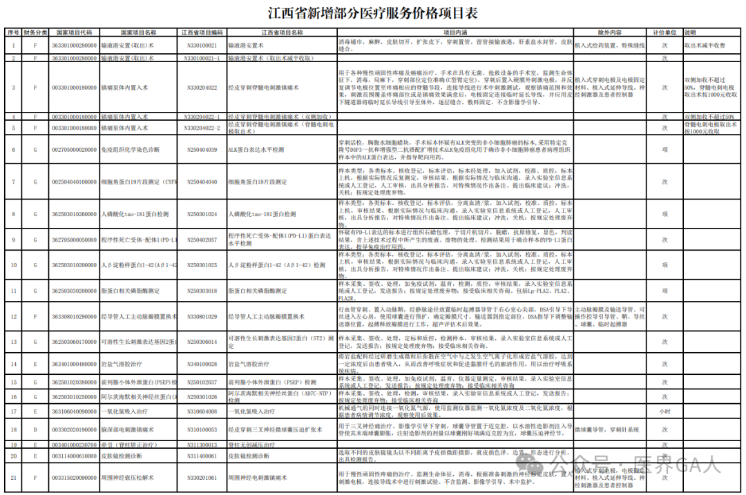 今天中午,江西省医保局联合省卫健委印发《关于公布新增和修订部分医疗服务价格项目的通知》(赣医保字〔2024〕32号), 明确新增 44 个医疗服务价格项目和修订 18 个医疗服务价格项目,其中,新增项目在全省非营利性医疗机构中试行,试行期 2 年;修订删除 1 个项目“病原体核糖核酸扩增定性检测”,合并入“各类病原体核酸检测”。通知自2024年8月1日起执行。优先通过现有价格项目兼容方式支持创新。通过受理新增医疗服务价格项目,对能够通过修订现行项目实现兼容的予以合并处理。