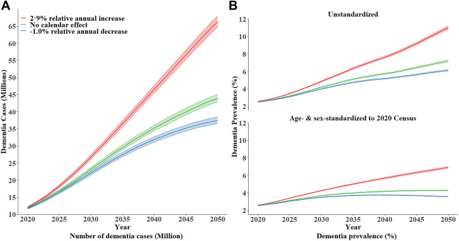 同时,每年有一批新的35岁无病人群加入模型,以模拟人口的自然更新。 研究设定了三种痴呆症发生率未来情景: