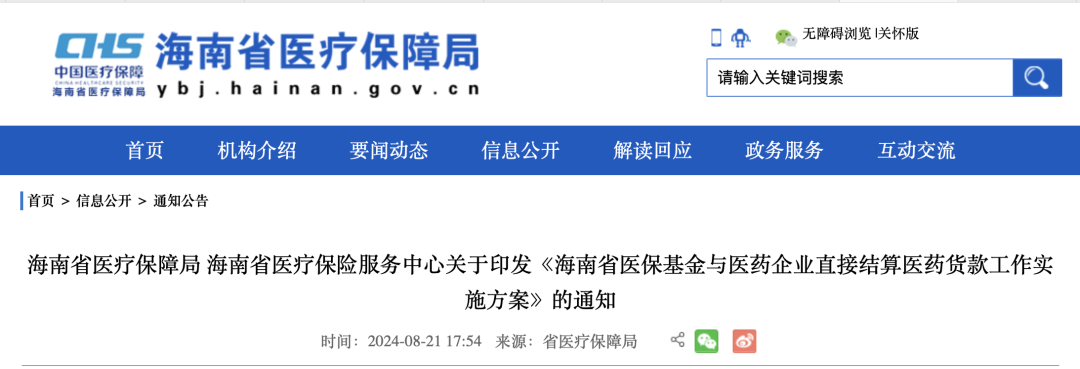 8月21日,海南省医保局、海南省医保服务中心发布《海南省医保基金与医药企业直接结算医药货款工作实施方案》。