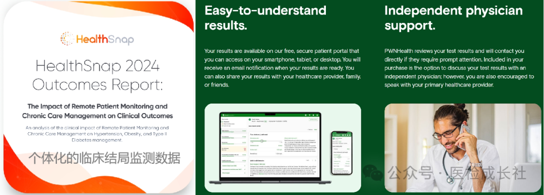 同样以Quest为例,其在C端宣传的卖点二是结合了专业的医学远程咨询第三方公司(PWNHealth,可理解类似国内的第三方医疗集团,该公司隶属于EveryHealth医疗集团)进行服务支持。