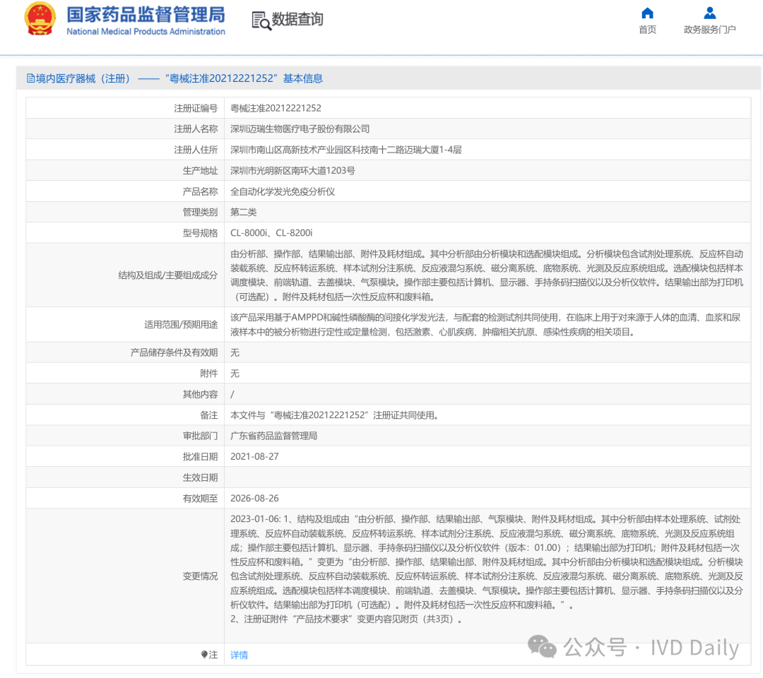 就拿迈瑞此前在恩施捐赠的其中一款发光设备CL-8000i来说,查询NMPA官网该产品适用范围和预期用途里明确说明与配套的检测试剂共同使用。