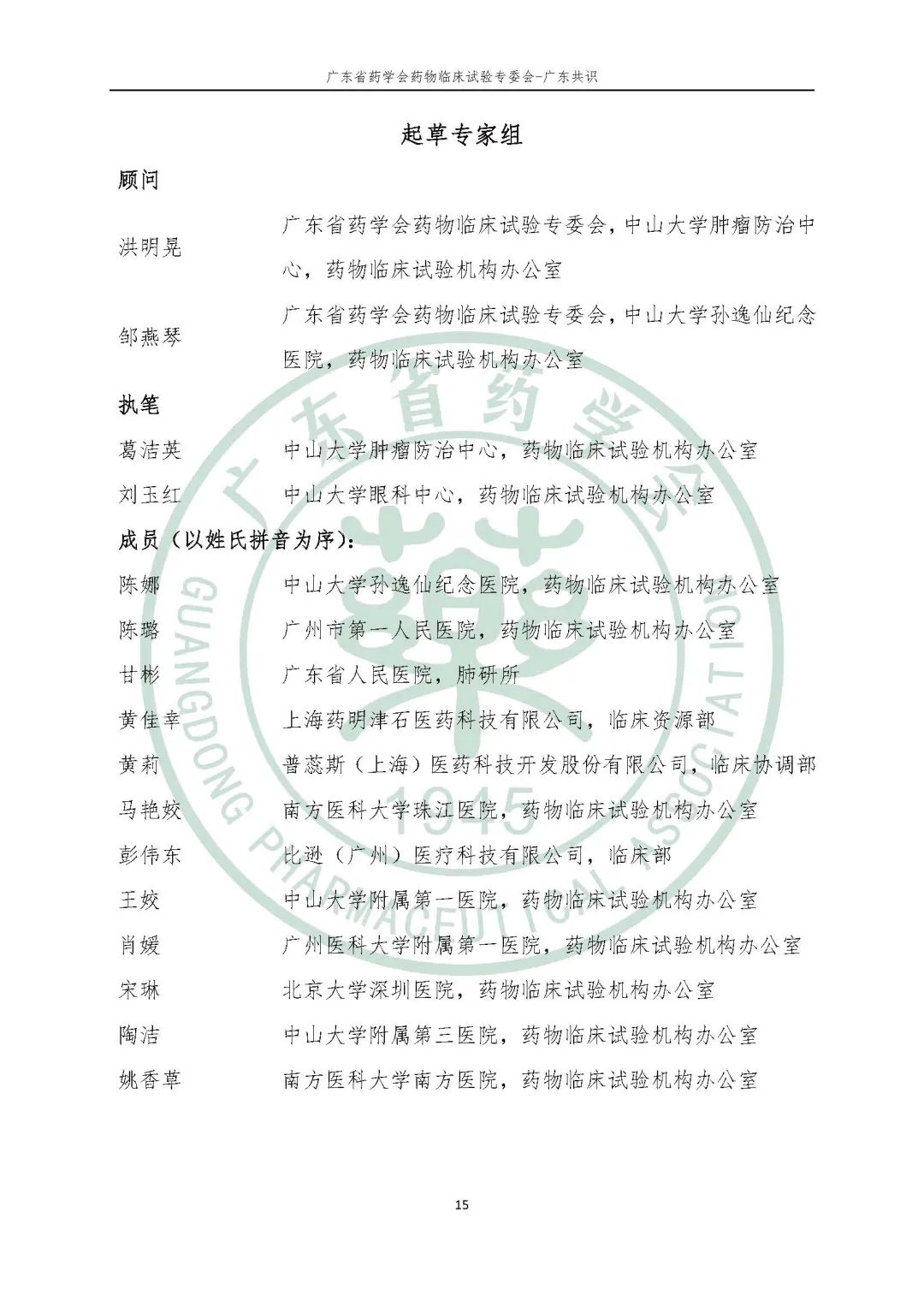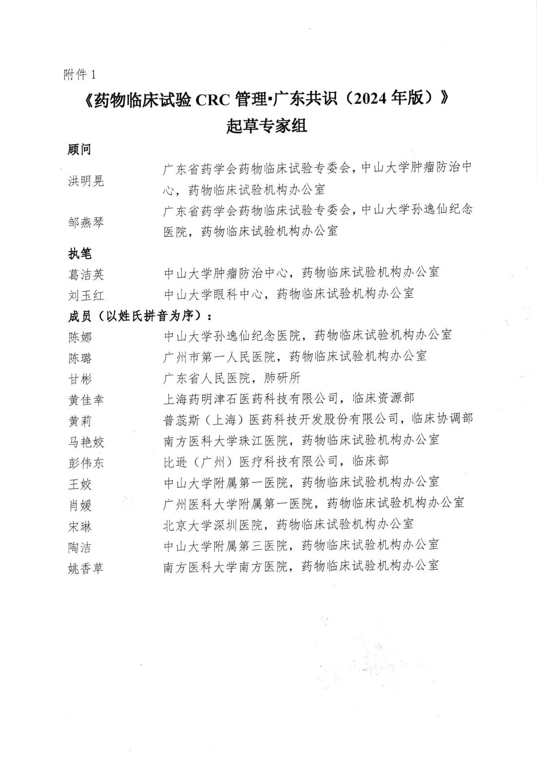 附件: 1、《药物临床试验CRC管理–广东共识(2024年版)》起草专家组 2、《药物临床试验CRC管理–广东共识(2024年版)》(请在本会网站“下载专区”下载) 广东省药学会 2024年7月30日 附件2 |