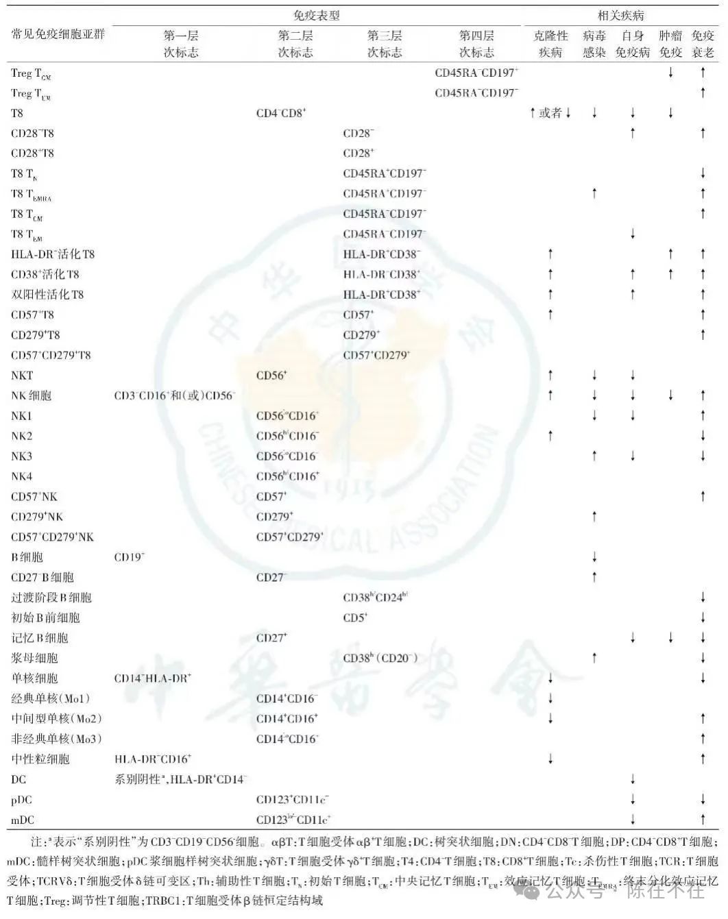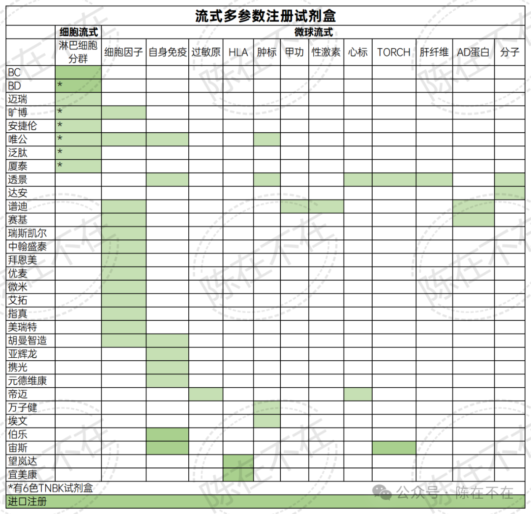 1 — 应用拓宽 Multiple indicators 流式细胞术有很多优点,作者曾总结为: 检测速度快、分析参数多、获取信息量大、灵敏度高、准确性好、方法灵活。 见笔者参与编著的《流式细胞术基本原理与实用技术》 如果说,流式细胞学最大的特点,那还是—— 分析参数多,准确地说是同时分析参数多。 先看细胞流式,尚红院士为通信作者的《流式细胞术的临床应用专家共识》给出常见淋巴细胞精细分型方案: 王卉,崔巍,刘贵建老师为通信作者的《基于多参数流式细胞术精细化分析外周血免疫细胞亚群的中国专家共识》给出精细化免疫细胞亚群及相关疾病中的意义: 再举个例子,看看小伙伴们整理的OMIP十色以下的方案 尽管细节上有所差异,但最大的问题还是,获证的商品试剂盒基本上是围绕CD45,CD3,CD4,CD8,CD19,CD16和/或CD56这七抗体所展开。 所谓六色淋巴细胞分群有7家公司注册; 四色淋巴细胞分群有6家公司注册。 除了泛肽公司的CD4/CD45RA/CD62L/CD8+线粒体染料试剂盒。 更多有价值的精细分群实质上仍未实现标准化,智能化,商业化。 再看微球流式,透景生命率先将肿标,心标,TORCH,肝纤维等指标实现同管联检。 赛基公司发端,瑞斯凯尔跟进,旷博,美瑞特,胡曼智造,中翰盛泰,唯公等13家公司相继获得细胞因子多联检试剂盒二类证。 胡曼智造,亚辉龙等聚焦自免市场。 赛基,谱迪率先开发阿尔茨海默病相关蛋白试剂盒。 透景,达安等分别从HPV基因分型,地中海贫血基因等分子试剂入手。 我们相信,只有坚持同管多参数分析这一核心优势,将临床意义讲深讲透,临床流式细胞术才可能在IVD诸领域中绽放——结果——壮大。 同时,注意几个问题:
